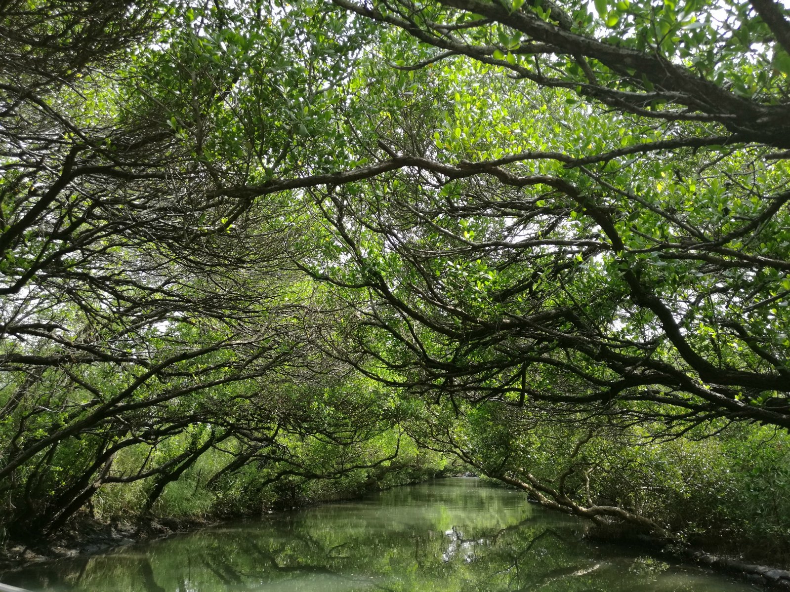 #我要精彩台历#四草隧道在某些宣传里被称为“台湾的亚马逊”,网上流传的一些照片,树木的枝条挡住天空,倒影在绿色的水里,看起来相当梦幻,然而实地看来就是一个小沟啊!本篇点评全是原片直出,力图还原一个真实的四草隧道。