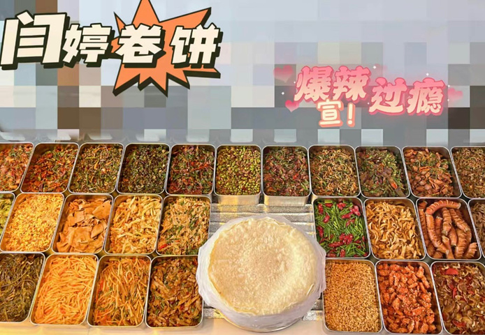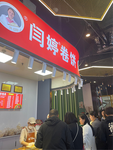 五一假期特意辗转大汉古都徐州,来了必须打卡徐州美食,去徐博乘地铁的路上无意间看到地铁站海报窗口的宣传~闫婷卷饼,本来对这种美食很感兴趣,爱吃的哟,必然不可放过,搜索发现竟然还有很多分店,由于时间关系要赶路,导航最近的店铺也许来不及去了,不甘心的回到1818附近的金地酒店,然后想想还是买点其他吃的吧,没想到真没想的刚进1818入口就看到一家闫婷卷饼店铺,但是导航上没标识,也许是新开的还没来的及吧,吃的人挺多,略微排队一小会就轮到了,看了招牌价格,时间关系选了12元的霸王套餐,好多菜啊,包装带走路上可以享用了,结果名不虚传,我喜欢微辣的,面皮好劲道,包的菜品种多,味道超级棒,辣度正合胃口,吃的太爽了,真不虚此行,好喜欢吃这个地道美食,感觉比阜阳的田三卷膜还好吃,真是舌尖上的中国,地大物博,美食无处不在