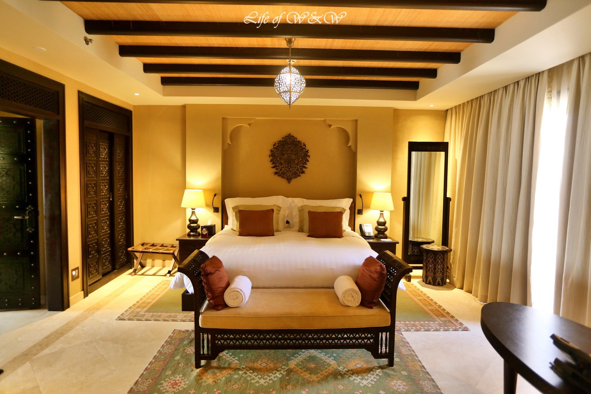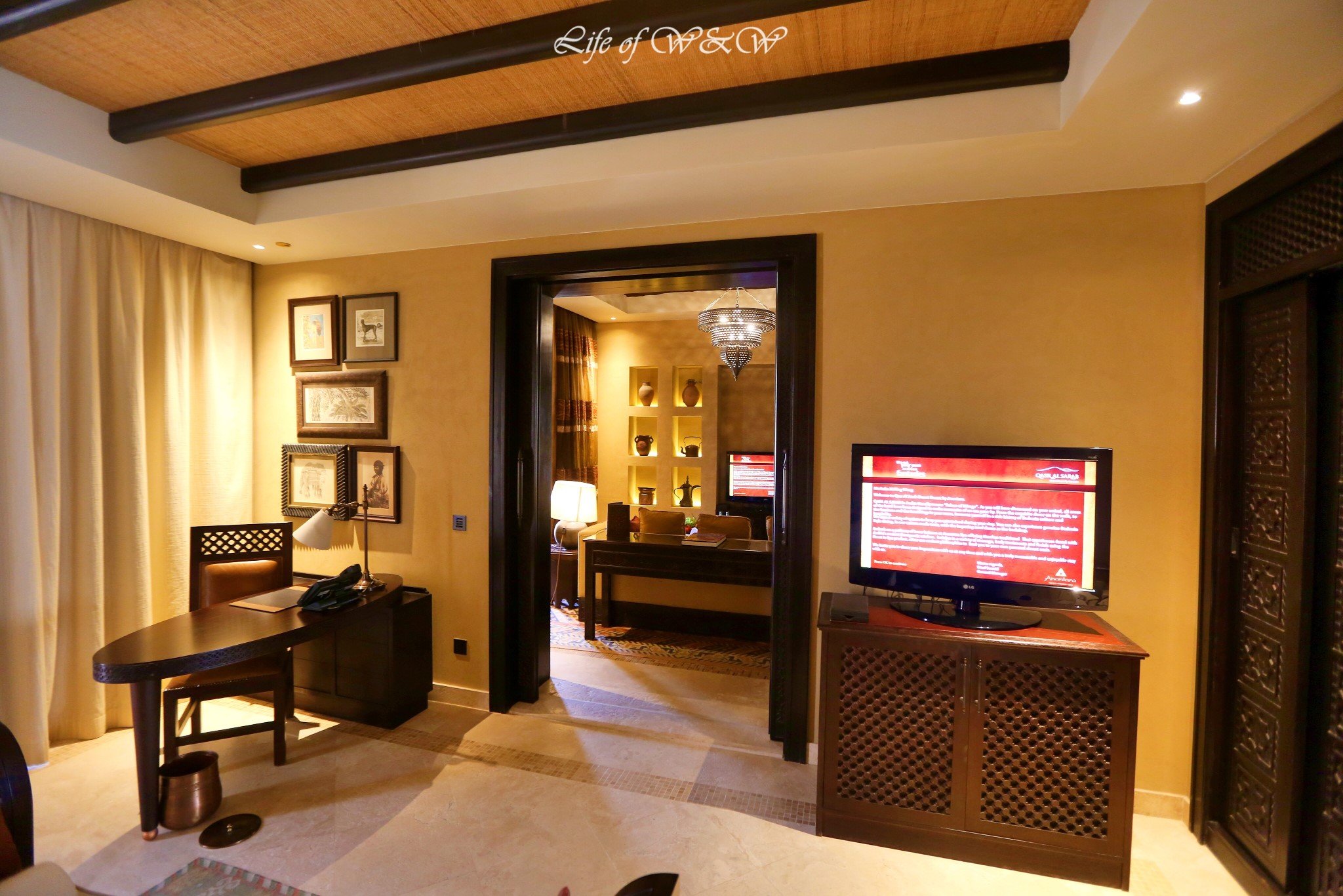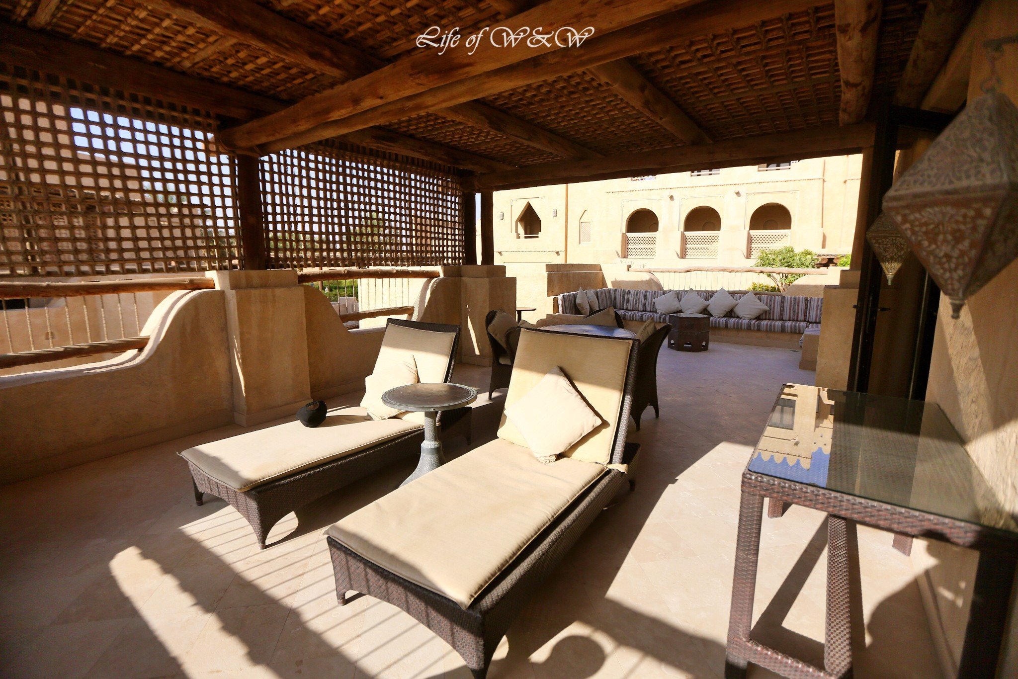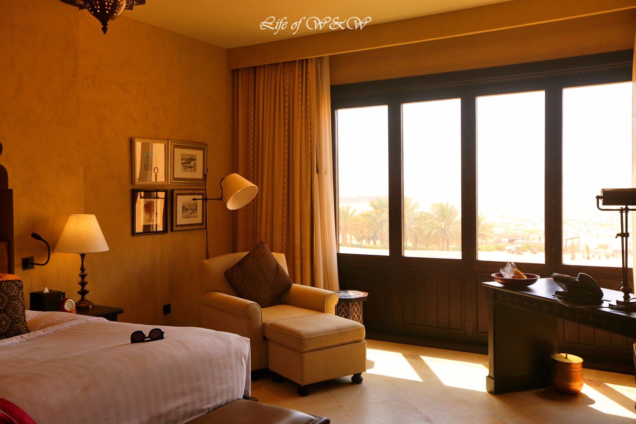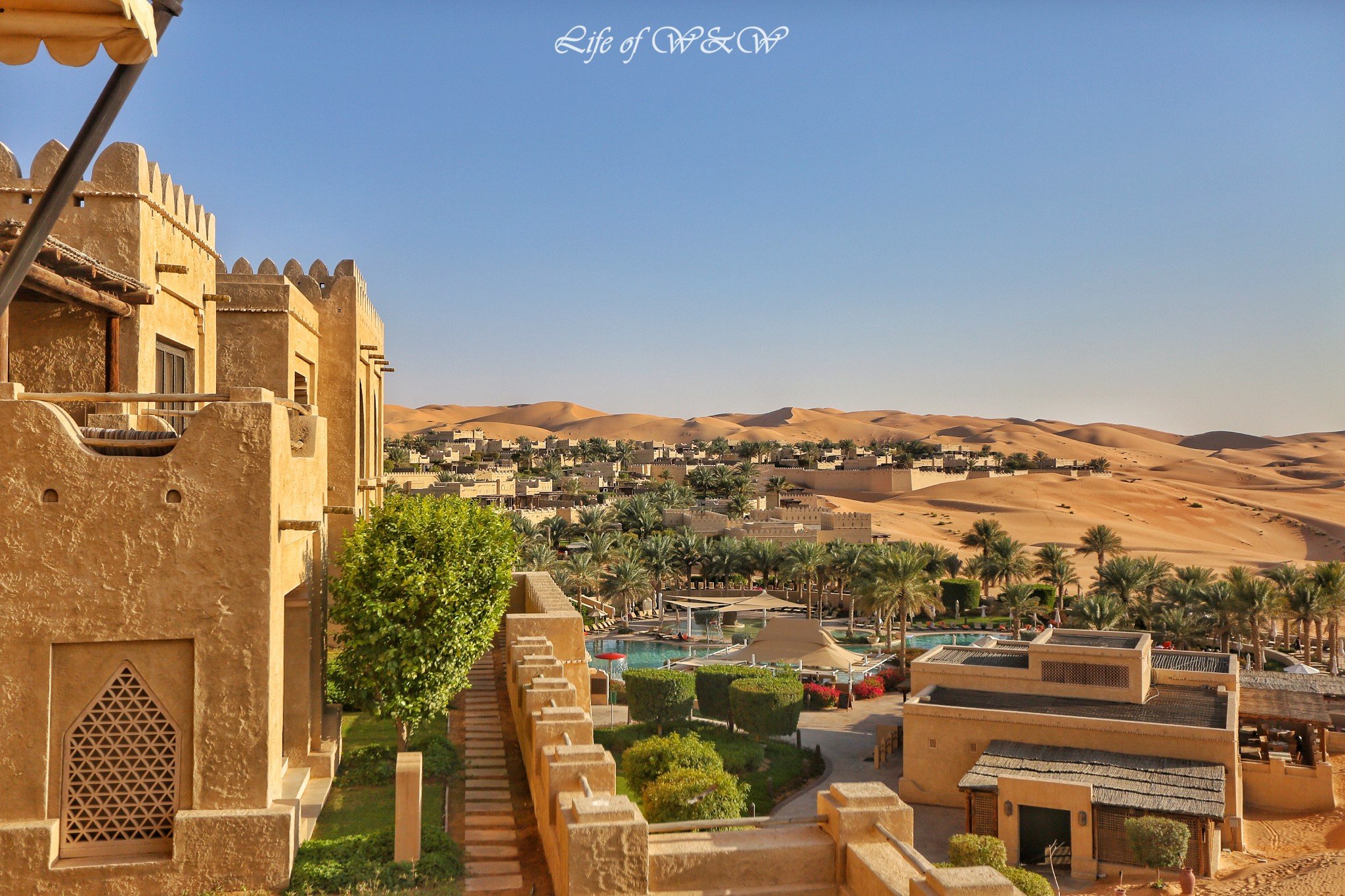 1. 安纳塔拉盖斯尔阿萨拉沙漠度假村(Anantara Qasr al Sarab Desert Resort);露台房4400RMB/晚,一卧室泳池别墅6000RMB/晚,含早餐。
