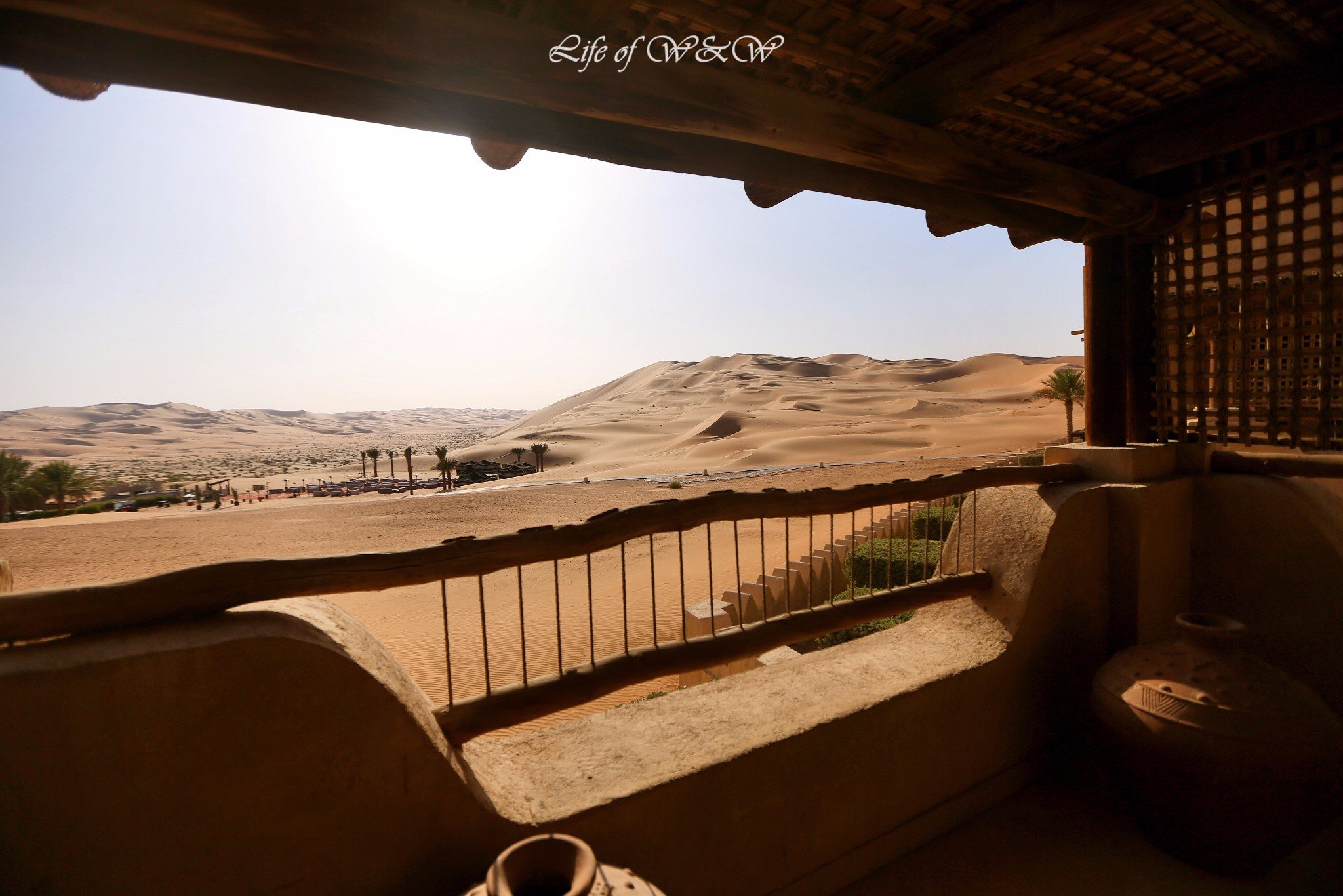 酒店有两百多间房间,但是入住感受很安静,看不到太多住客来回走动。每个角度看酒店和沙漠风景都不同,我们每天从早到晚爬上爬下来回走也拍不够。