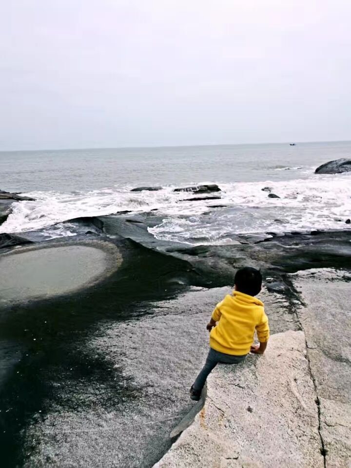 第二天一大早,我们就坐上了去崇武古城的公交车。一个多小时,就到了崇武古城。威武的古城墙,浪拍岩石的惊涛赫浪,让儿子开心的不得了。逛完崇武古城,儿子跑到海滩去挖沙,我和爸爸找了一家海滩的小面馆,吹着海风,听着海浪的声音,看着挖沙兴奋的孩子,一切都是那么美好。