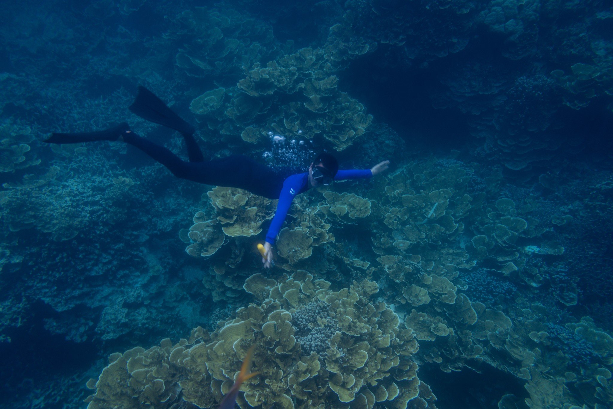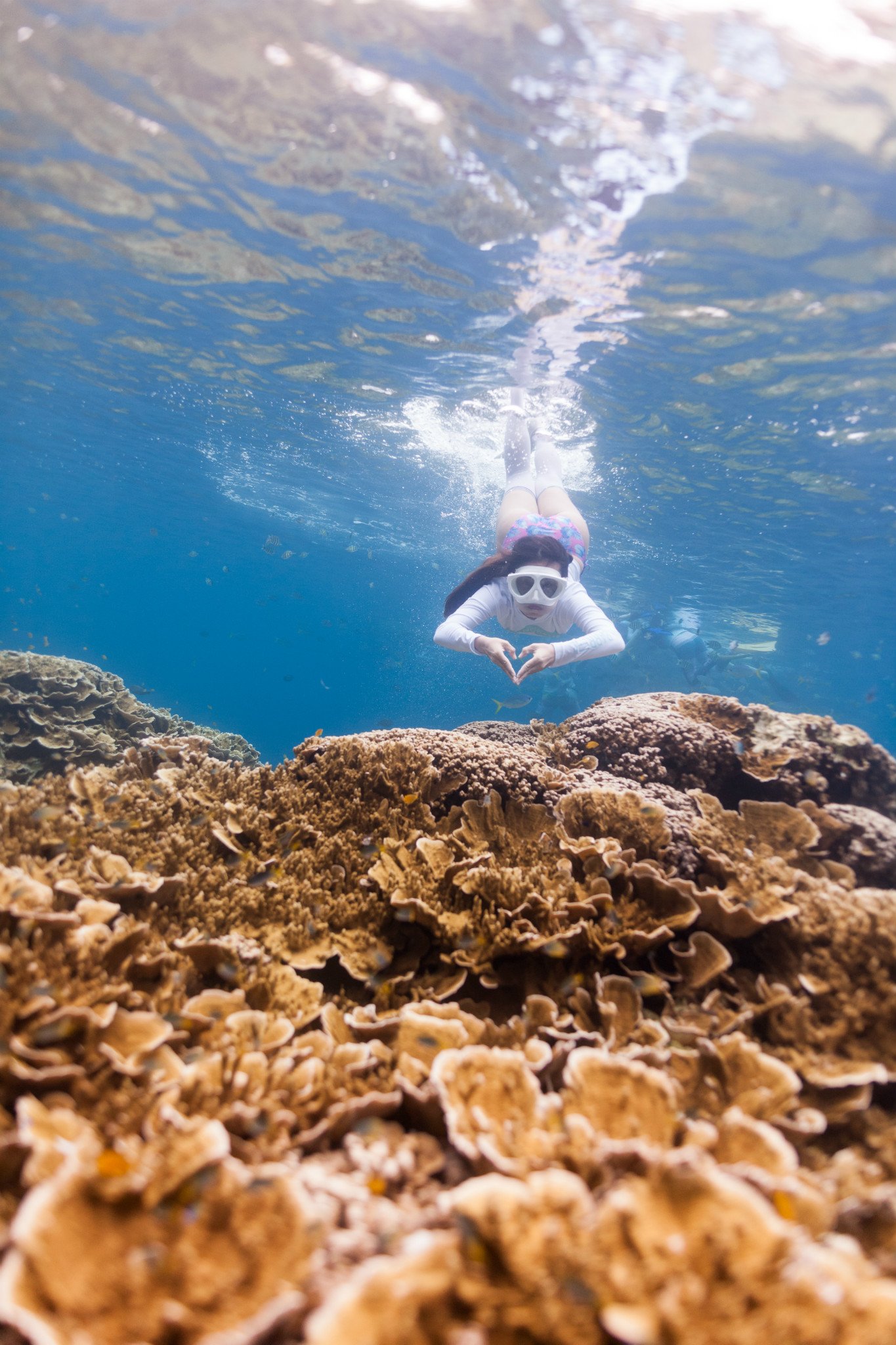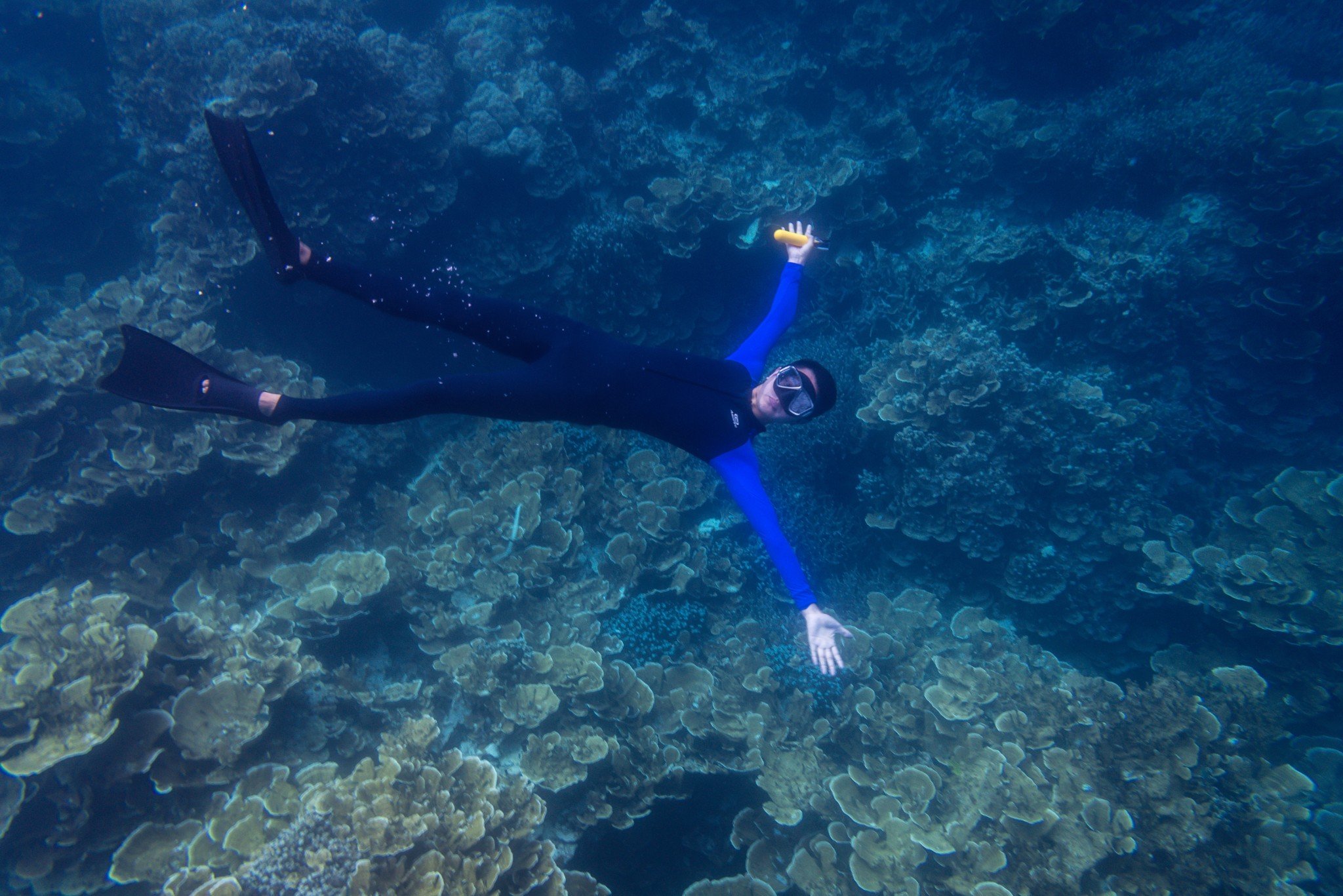 “这是一片如玫瑰般艳丽的海底珊瑚,在阳光下肆意绽放,色彩缤纷的小鱼用嬉戏点缀了花园的美丽,此时此刻,我只想挣脱掉这救生衣的束缚,无限可能地靠近它们,可惜头一低,这地心引力就分分钟教做人,妈蛋,水真咸。”