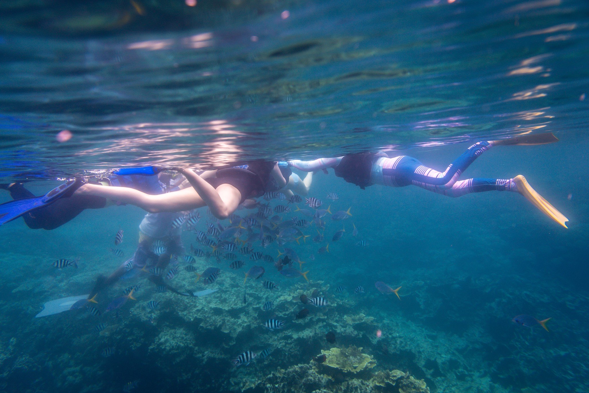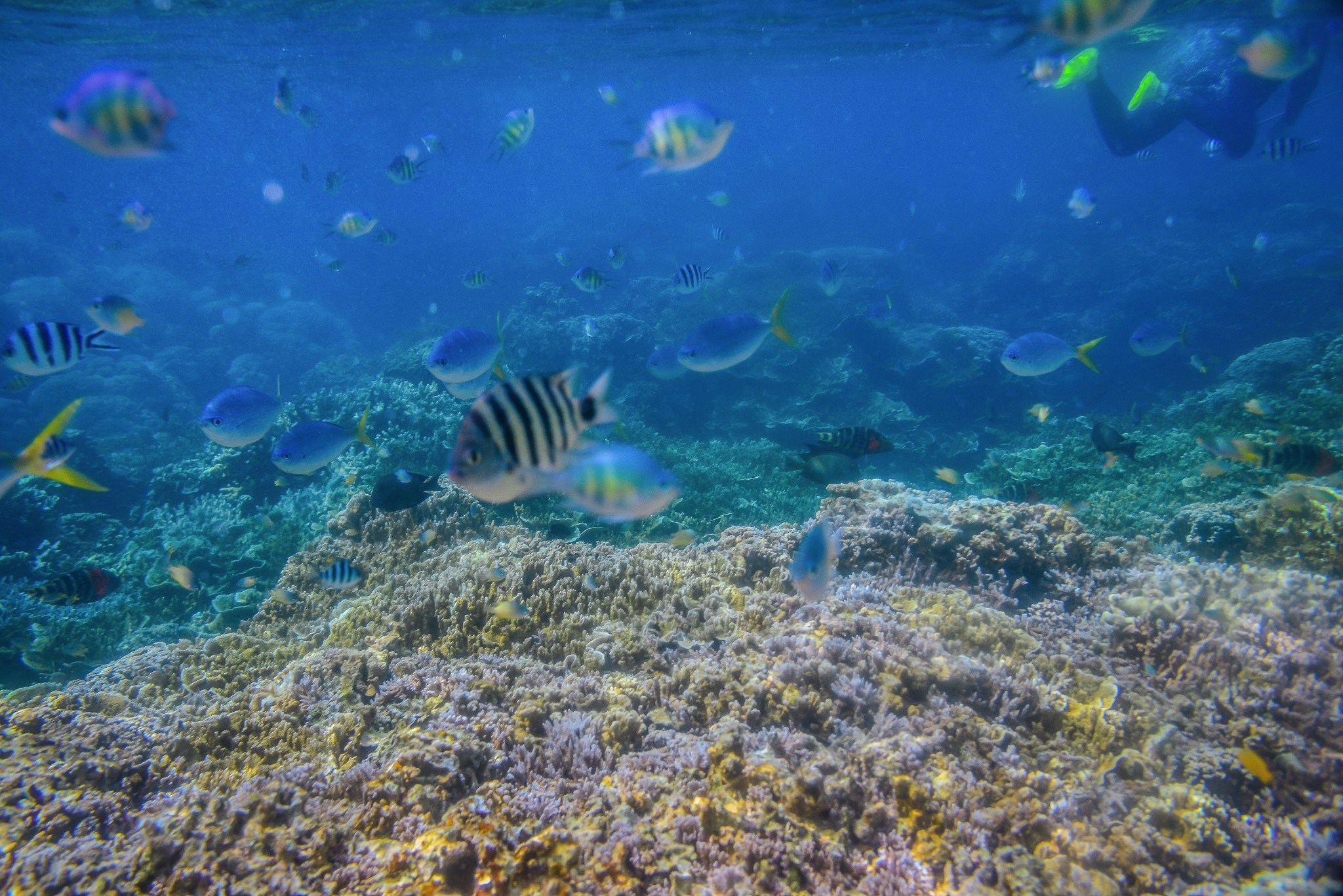 如果把帕劳的海底世界按照人类城市来设想,黄玫瑰珊瑚区也是帕劳的一个“鱼口大镇”,熙熙攘攘的鱼流,让人目不暇接,不能自由潜的人们可以聚到一起,用面包和小鱼做游戏。