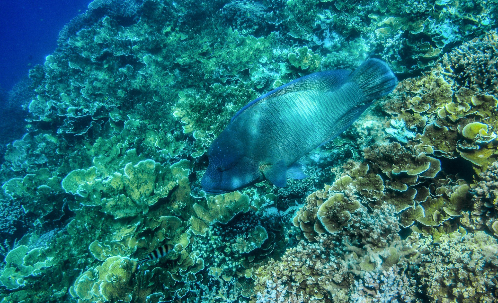 不过整个花园真正的主人,是这条1米多长的大苏梅,帕劳的国宝,海洋中的大熊猫。黄玫瑰珊瑚花园