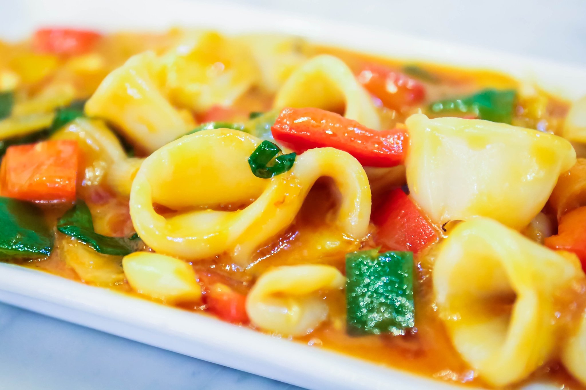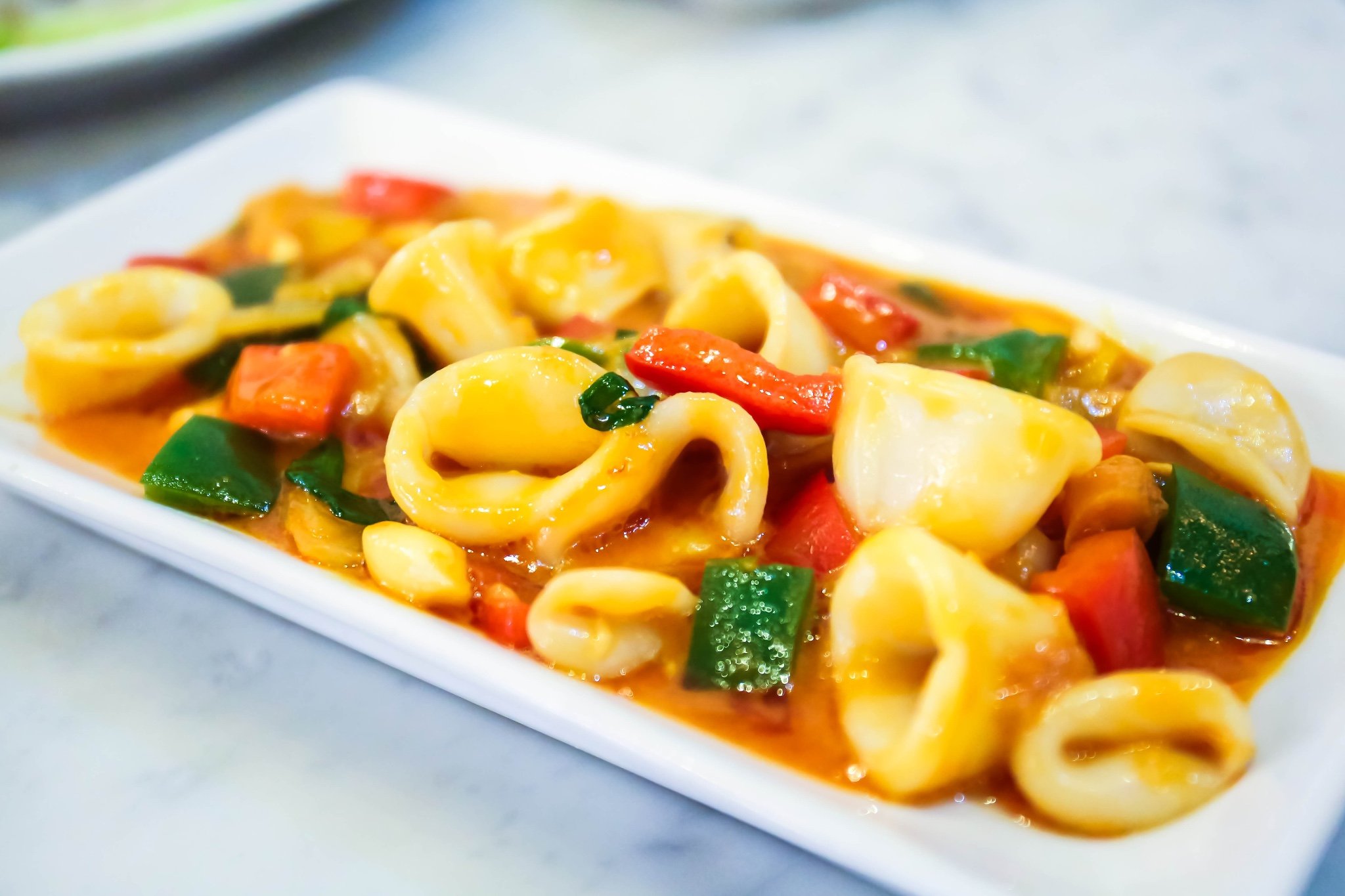 炒制鱿鱼的咸蛋黄酱料配制得非常棒,