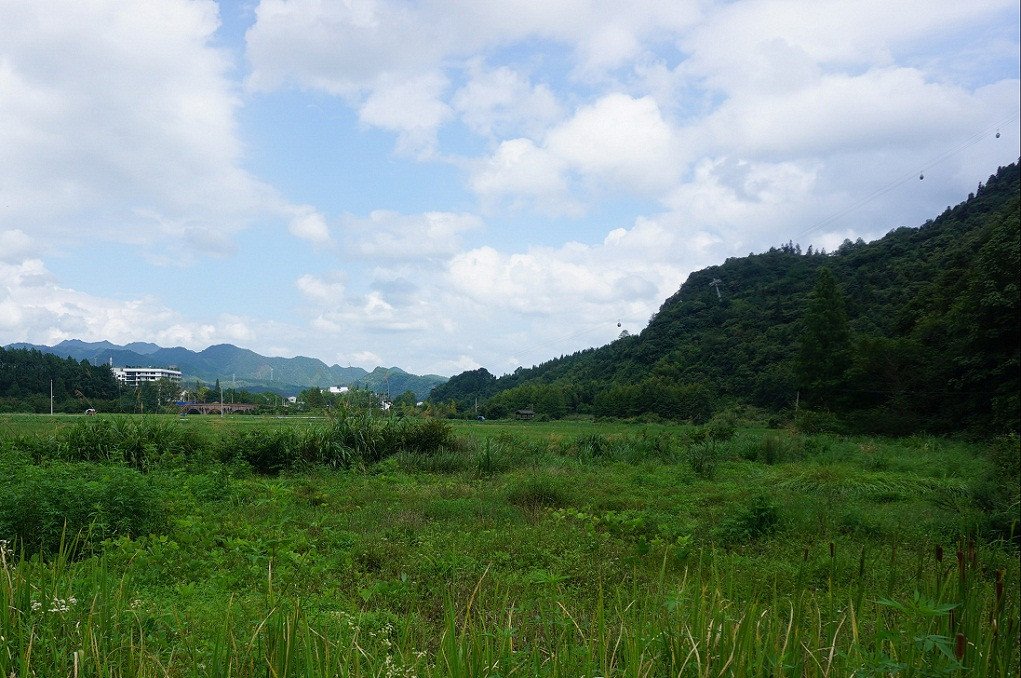 此处可看见缆车。再往前是八卦田,但是平地上看不出。