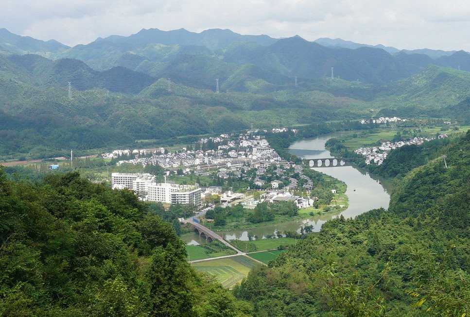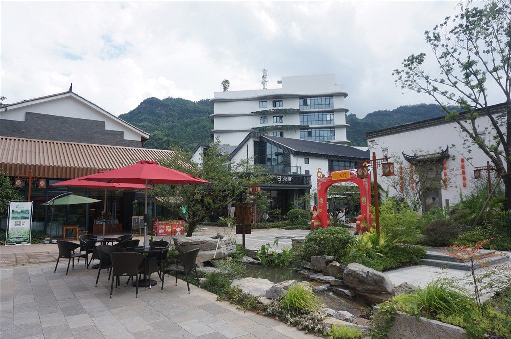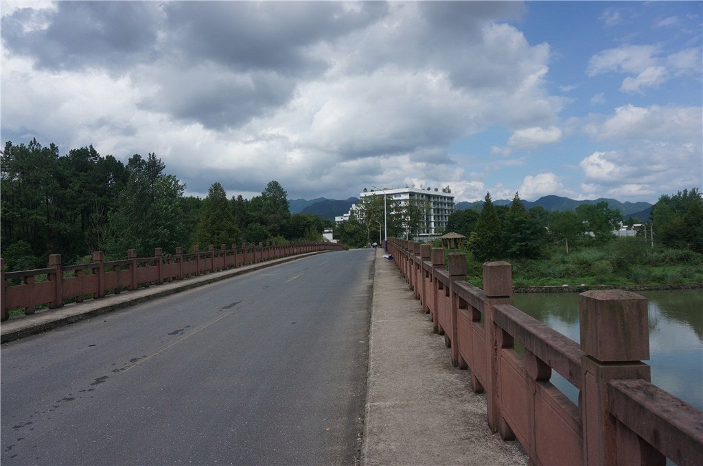过桥后导航上显示的直行小路已经毁坏封闭,右转走公路,14点37分到达齐云小镇,穿过商业街去游客中心。