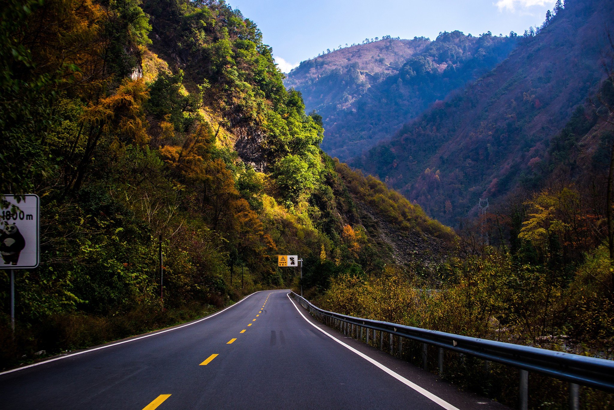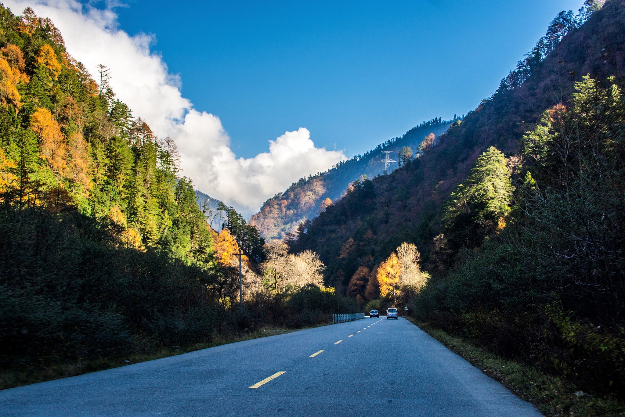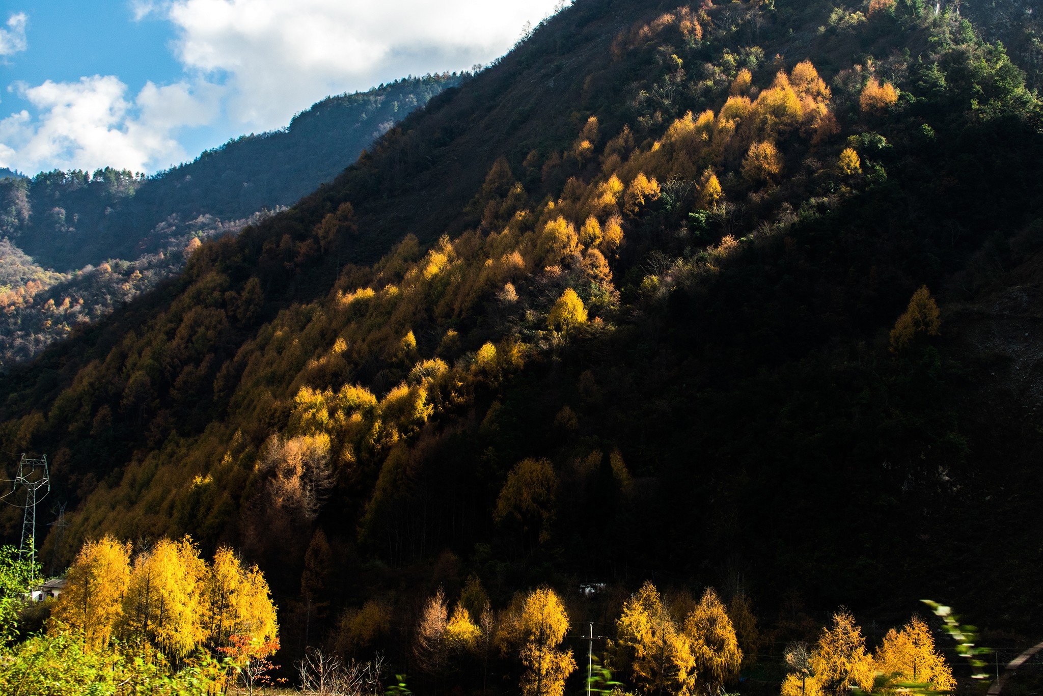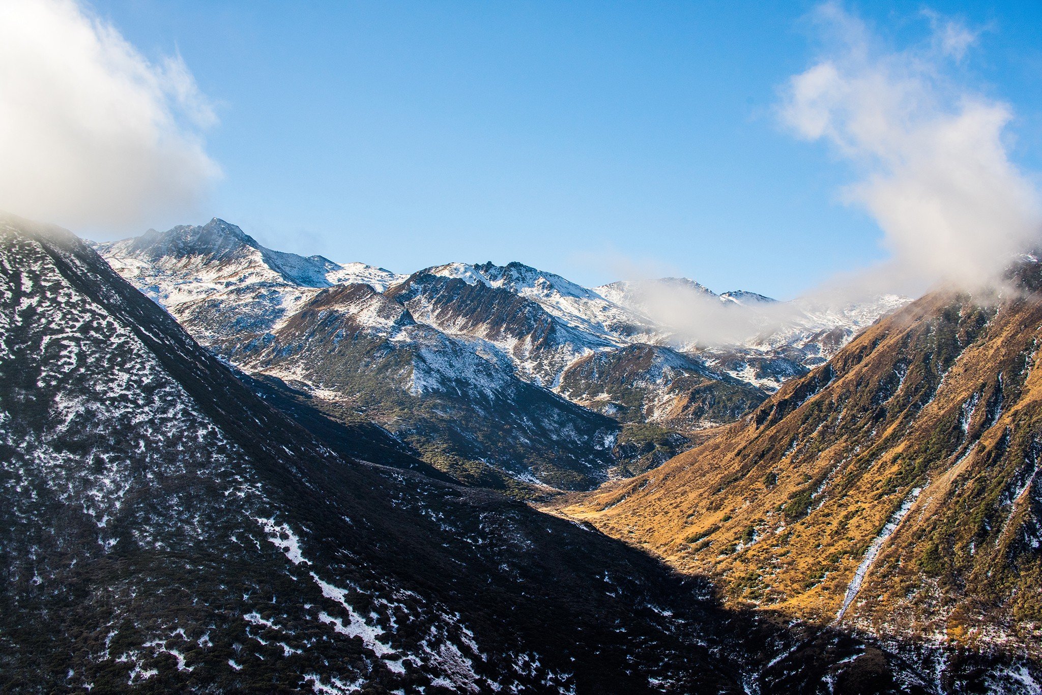 过了巴郎山隧道后,能看见雪点,朝阳洒在黄色草甸上,别具特色。路过猫鼻梁,忍不住再拍两张