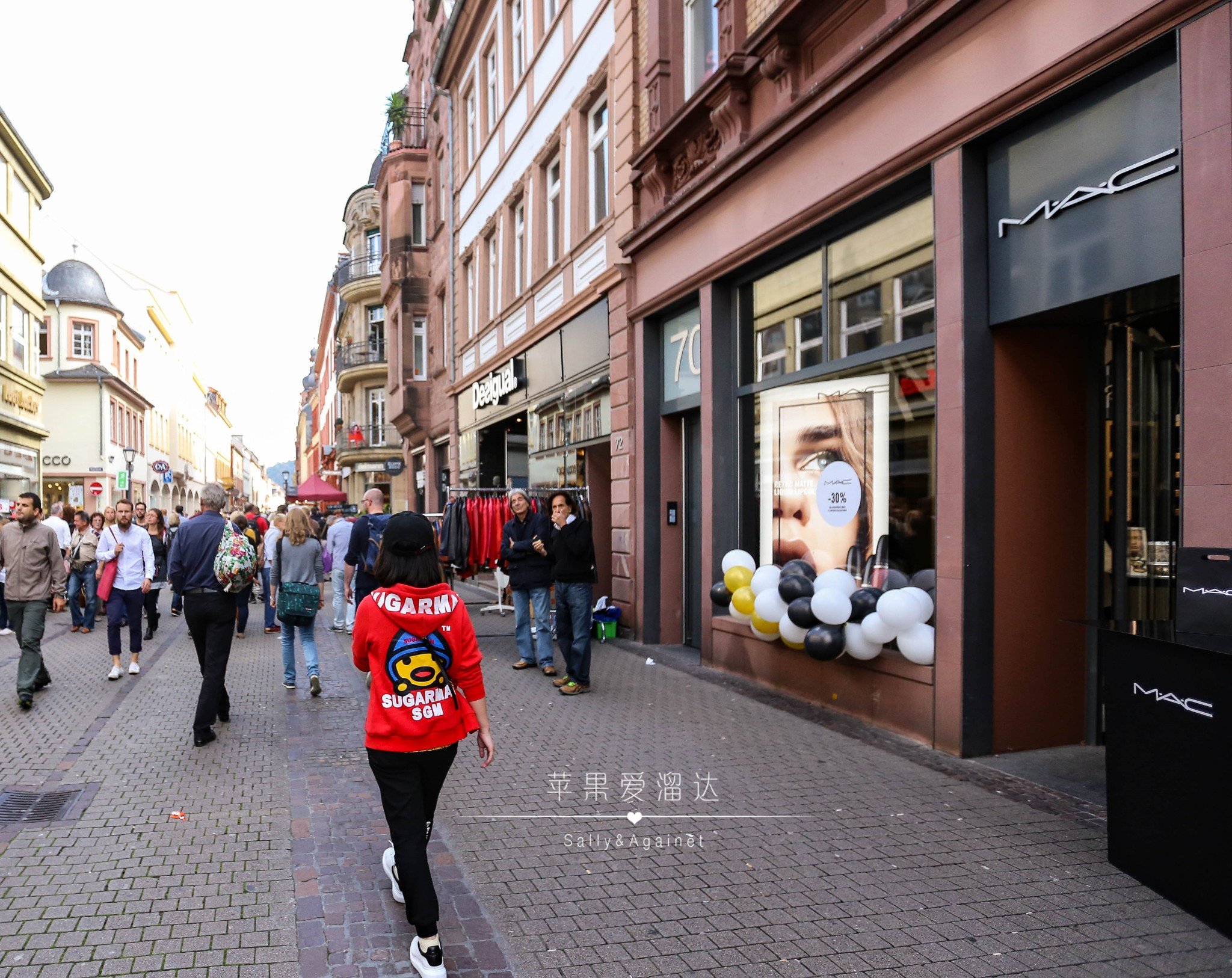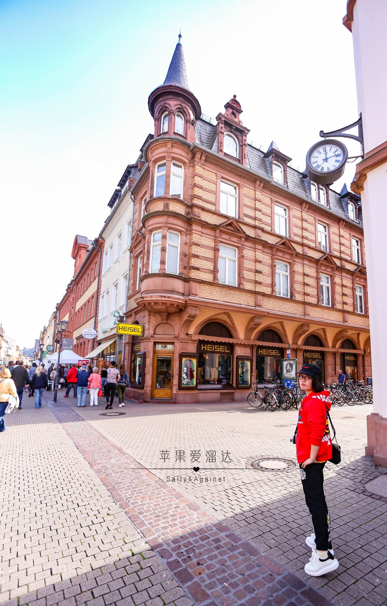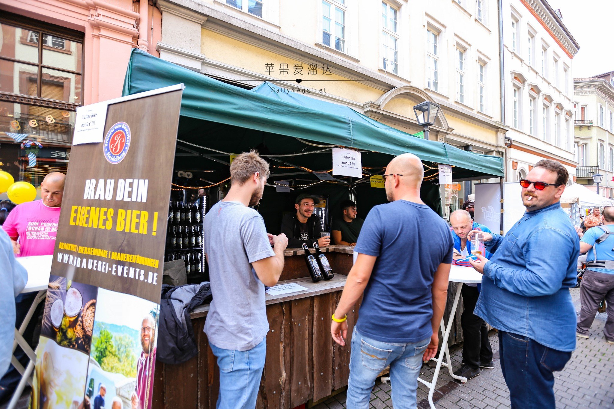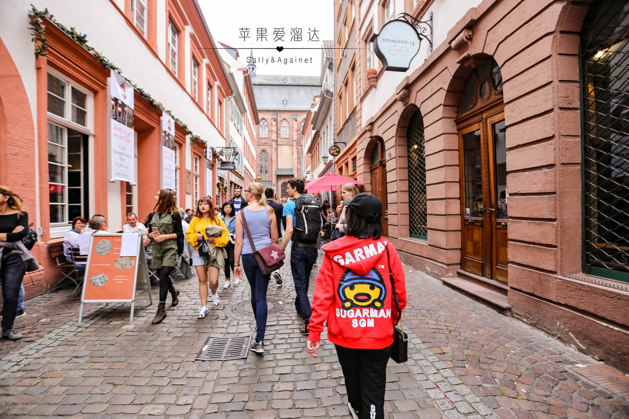 过了一条马路就是海德堡老城的主街了,一到主街我们一脸懵逼,说好的静静流淌的中世纪呢,马路上人头攒动,街边各类小贩各自吆喝着,还有从各个巷子里传出来的各种刺激耳膜的音乐。后来路边卖香肠的小姐姐才和我介绍,海德堡一年中360天是安静的,只有5天的节日才能让整个海德堡燃起来,而秋节,正式海德堡最燃的一天,哪怕火烧海德堡的焰火节也无法媲美,那好吧,就让我们来体验最不一样的海德堡。