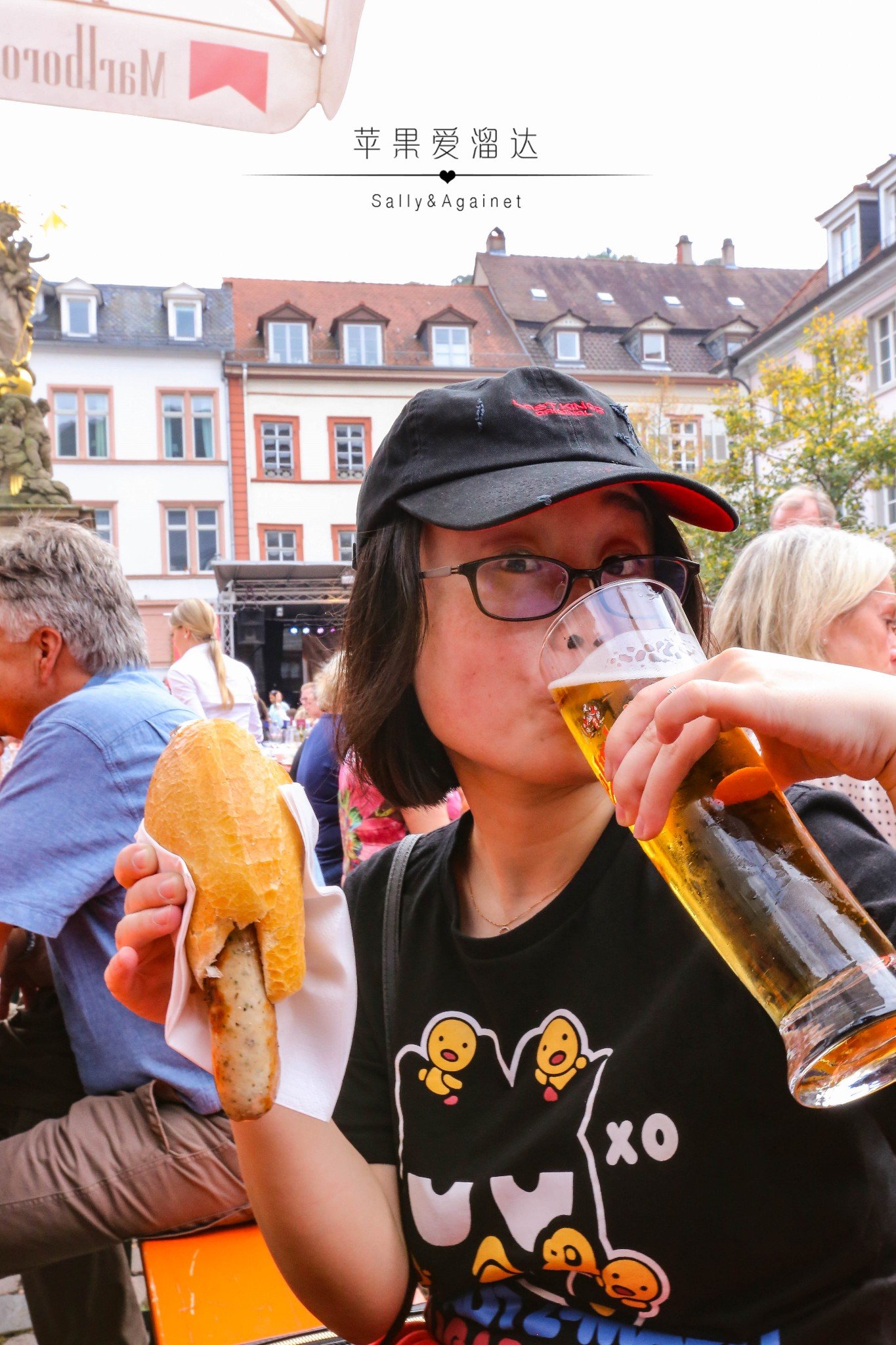 也许是看到了真正的海德堡,下来到了广场突然也没觉得很吵了,在温柔的民谣伴奏中,大家三两的面对面坐着,喝着啤酒,吃着香肠,每个人脸上都有着丰收的喜悦。