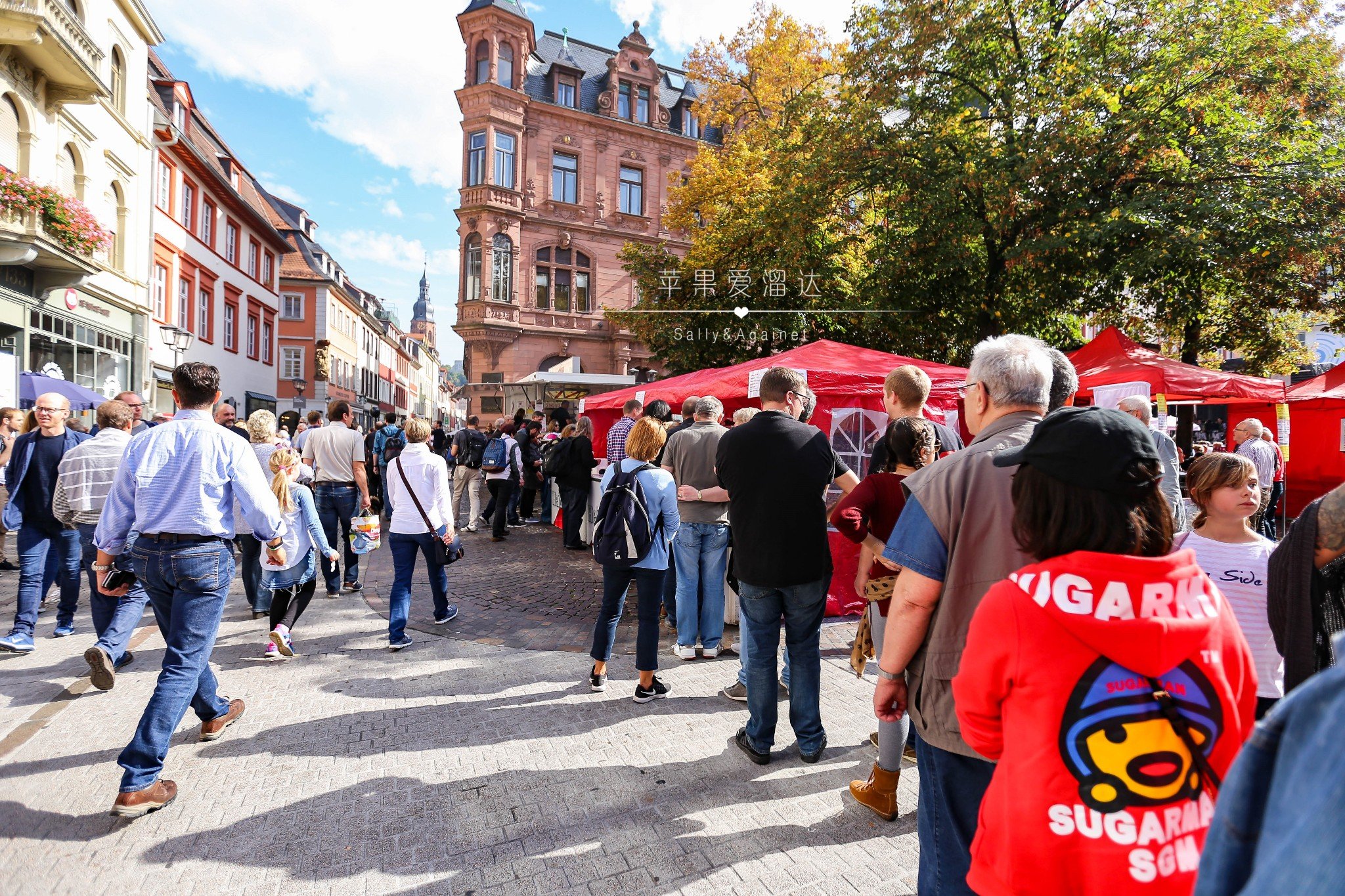从科隆开高速只要2个半小时就可以到海德堡,海德堡是德国著名的大学城,产出了40多位诺贝尔奖的海德堡大学就坐落在此,而且整个海德堡古城其实就是原来的大学。而海德堡的美誉实在太多了,在内卡河上静静流淌的中世纪,歌德把心遗落在此。而我们这次来正好赶上海德堡的秋节,秋节是每年9月份的最后一个周六,是海德堡每年庆祝丰收的节日。每年最新成熟的果实、还有每年的葡萄酒的新酒只有在秋节上才能喝到哦。
