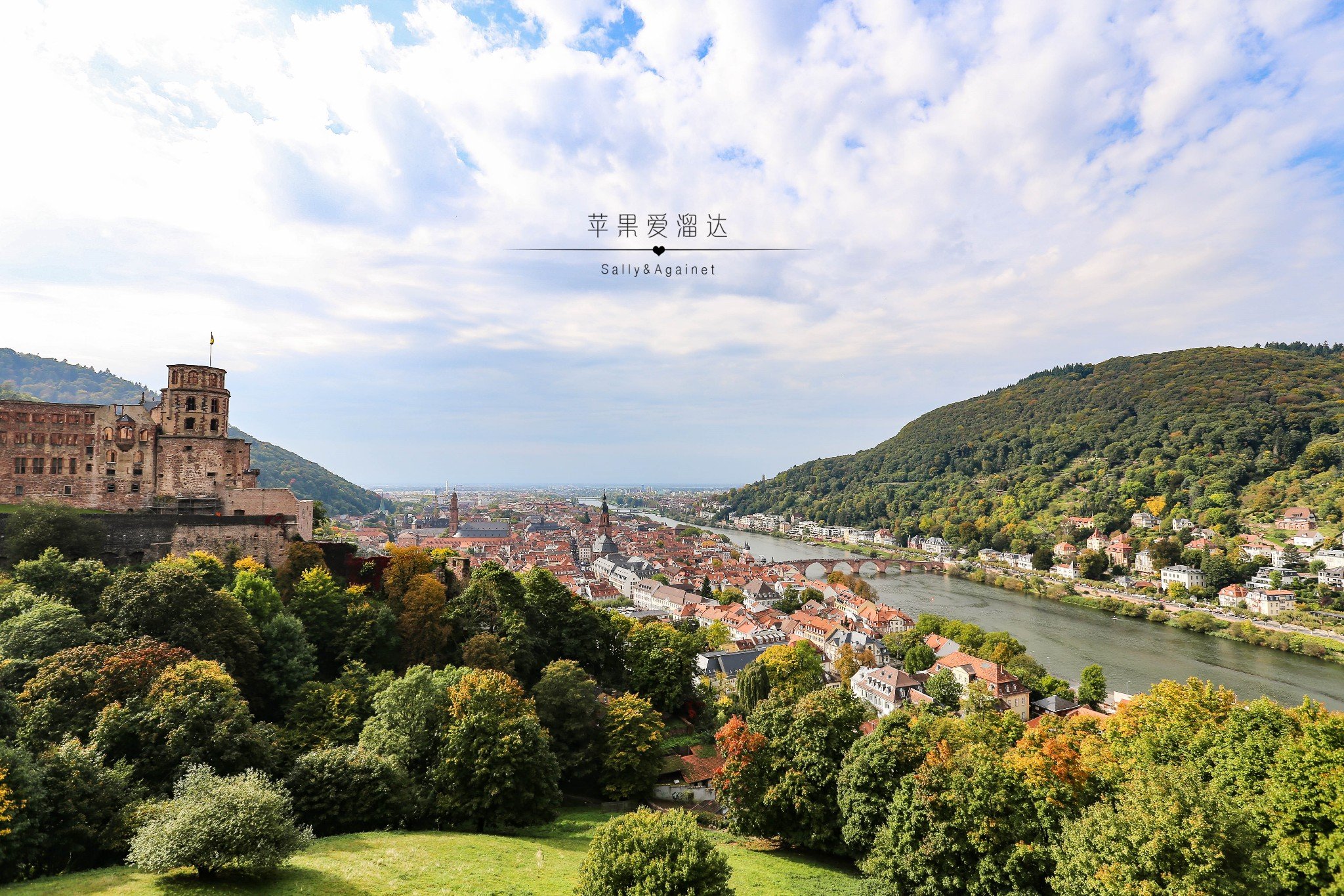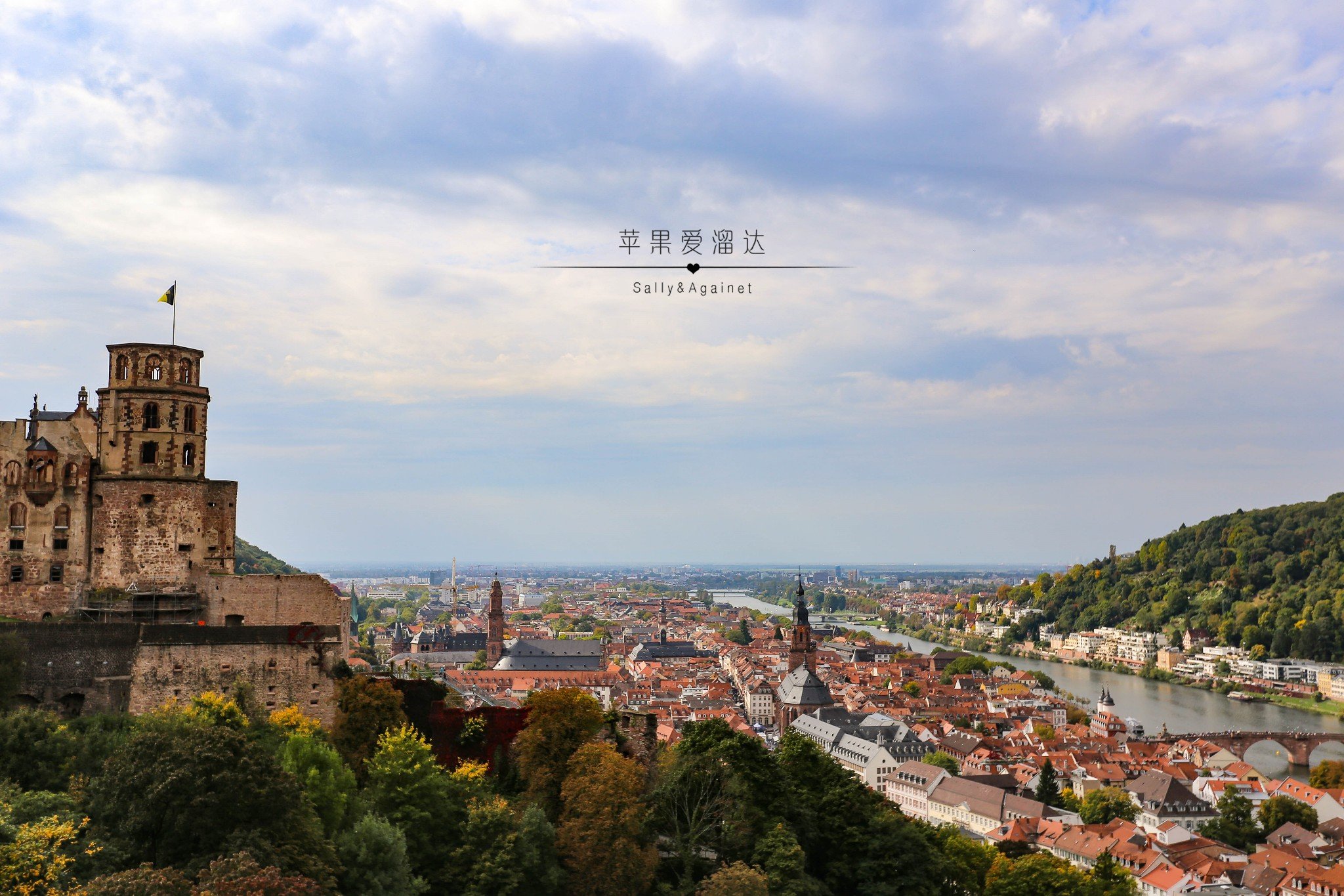 之前在科隆的阴雨绵绵还在担心,没想到到了海德堡就晴空万里,一下子心情变得飞扬起来,果然我们每次出来旅行的天气都很给面子。