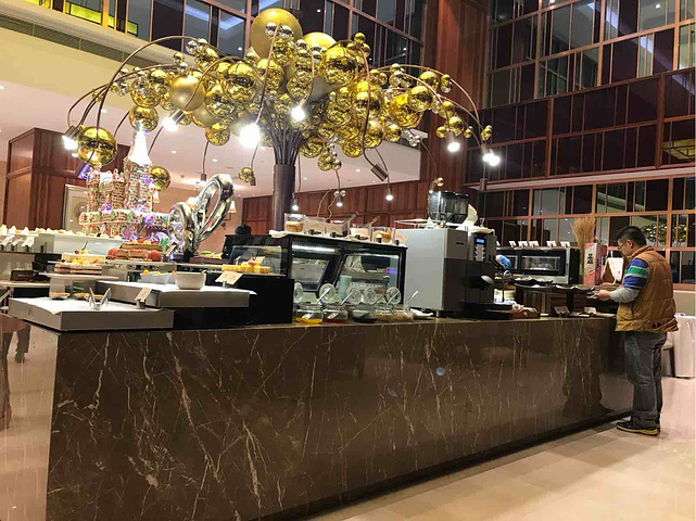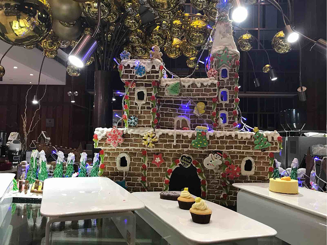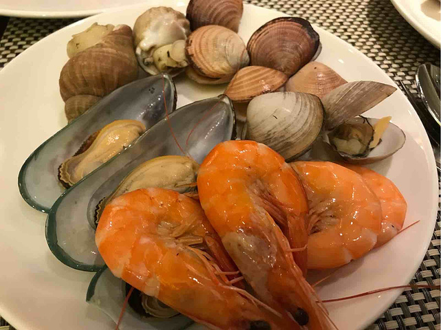环境很棒,酒店是五星级酒店,自助餐厅也很有档次,装修风格高大尚,还有圣诞节的各种装饰,各种食物排得整整齐齐,光看着就很有食欲~预约得早的话可以指定要靠窗的位置,如果你喜欢看南湖夜景的话,不过餐厅灯光有点强,玻璃窗会反光,所以就别抱太大期望啦,再者,去吃自助餐当然要狠狠吃!而不是去看夜景哈~ 服务周到,在景湖轩电梯到6楼前台后,报预约的名字和手机号,服务员会带你到你预约的位置上,然后会有专门的服务员过来问你是用餐券呢还是现金还是刷卡结付。结付后会在桌子上放一支插了花的花瓶~而且不定时有服务员主动过来收拾空盘~ 来点有实用参观值价的干货攻略吧~ 记得要去早点,不然太晚去了,时间不够的话划不来,哈哈,我们是18:30到的餐厅,各种食物排得满满的,进餐厅门口后左边海鲜区,右边是火锅区,我们决定进攻海鲜区: 花蟹:可能是季节的缘故吧,每只大概都是三两左右,吃这东西除非老手,不然花在剥壳的时间太多了,所以我就拿了三只,很新鲜,可能我配的蘸料比例不太好,所以料理这块要注意调配; 海螺、翡翠螺这一类都是随便拿,个体大只的就没必要一性次拿太多,毕竟没吃几个就差不多饱了,后面还怎么吃其他呢~同样,也很新鲜,但都是冷食,想热一下再吃的话,可以去火锅区自己拿火锅底料(那里有很多有药效功能的底料的,但我对这方面没研究就选了冬荫功汤料,味道不错,有点西红柿的酸,正好,开胃~)然后服务员会帮你把桌子上的小火锅具升火~ 烤生蚝:算得上比较大个吧,都是现烤,所以需要排队,人多的时候可以先去挑海鲜什么的,等人少的时候再去排,一个人一次能拿五个~ 然后没见有小龙虾,略微有点小失落~ 基围虾这些常见的就随便吃点就好啦,毕竟咱来的是自助海鲜大餐哈~ 牛扒也是现烤,跟师傅说要几成熟就行,我们要的七成,但感觉还有点生,味道不错,韧劲挺足,黑椒味的,吃起来很带感~ 三文鱼刺身,很赞,重点推荐这个!限量的~ 烤肉方面推荐牛舌、羊腿,肉实,大口吃肉吃酒必不可少~ 寿司和甜品很多,建议放在将要饱的时候再吃,冰淇淋推荐森莓口味的~好吃得连续吃了三个~ 有很多啤酒和红酒、各种饮料,天气冷,所以选的饮料是菠萝汁,个人觉得好好喝~ 中途还有服务员推个小车主动赠送海参粥端上来~ 人均消费178元/成人,不是很贵。 总体来说挺满意的,餐厅里就有洗手间,楼下有专门停车场,1号地铁在南湖站A出来走几分钟就到了,很方便!
