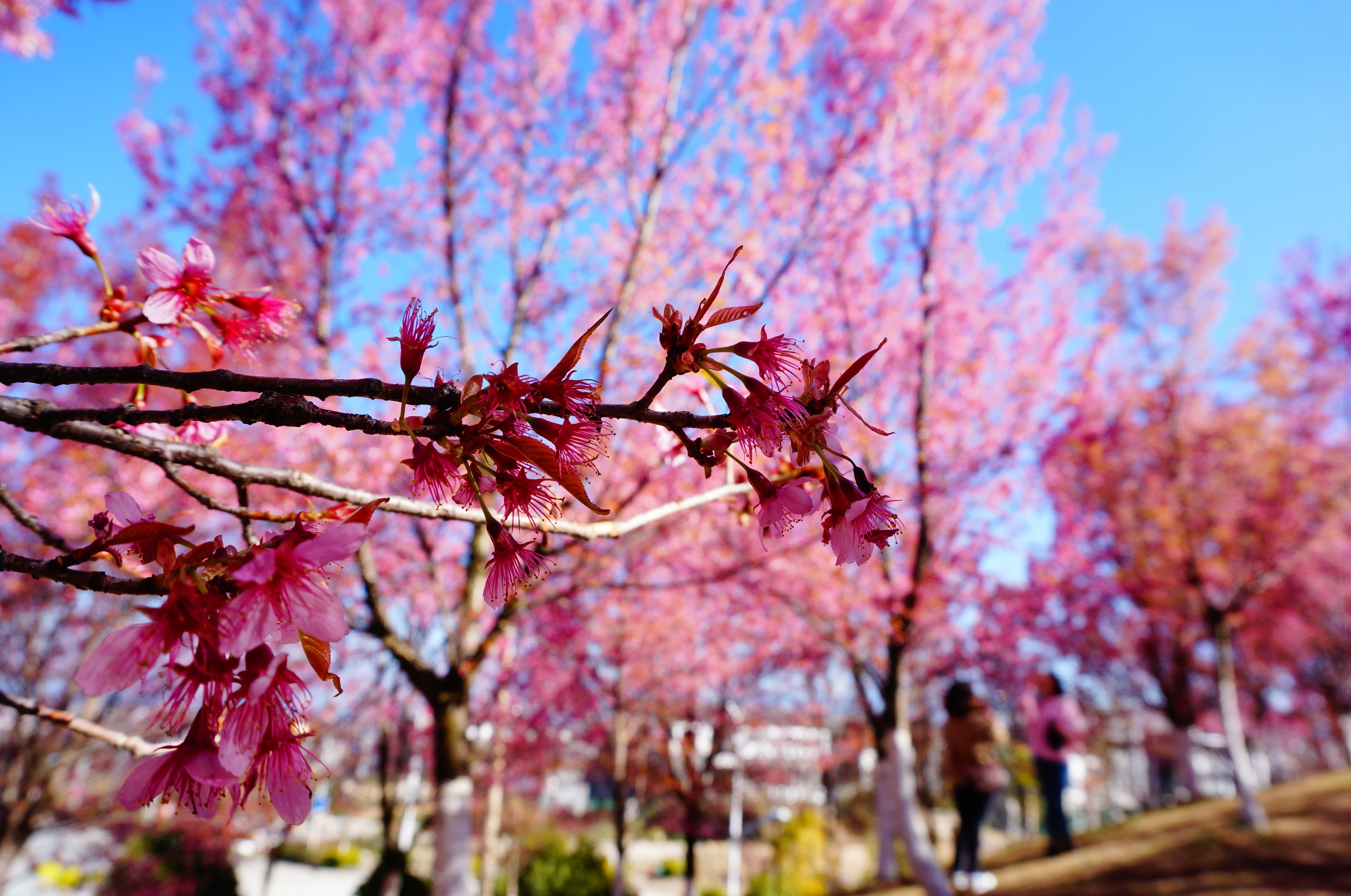 最最最重要的一点【樱花开放耗时间】:大理由于海拨高,日照时间也比较长,所以花期要早一点,武汉大学的樱花一般是3月份左右才盛开,但是大理大学樱花最佳观赏期是在一个中旬哦,下图的樱花就是在1.10左右拍的。