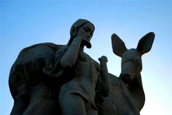 鹿回头有一个美丽的爱情传说:古代一位英俊的黎族青年猎手,头束红巾,手持弓箭,从五指山翻越九十九座山,涉过九十九条河,紧紧追赶着一只坡鹿来到南海之滨。前面山崖之下便是无路可走的茫茫大海,那只坡鹿突然停步,站在山崖处回过头来,鹿的目光清澈而美丽,凄艳而动情,青年猎手正准备张弓搭箭的手木然放下。忽见火光一闪,烟雾腾空,坡鹿回过头变成一位美丽的黎族少女,两人遂相爱结为夫妻并定居下来,此山因而被称为“鹿回头”。