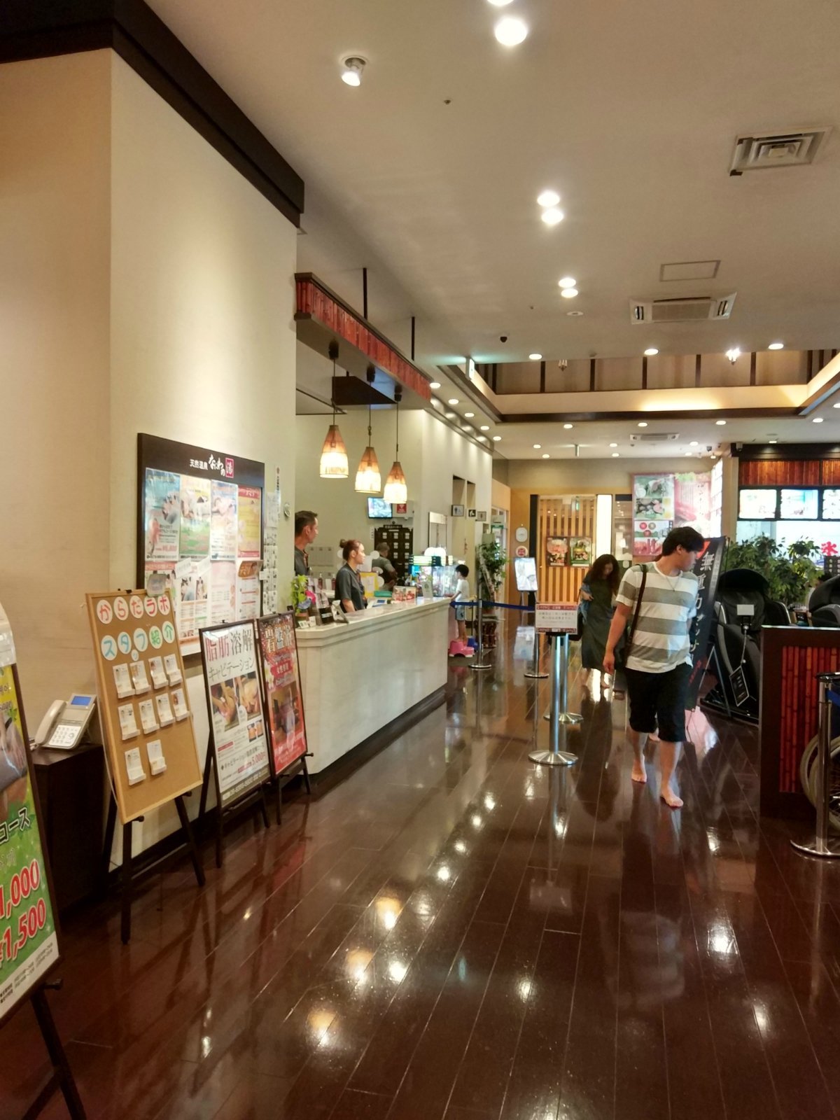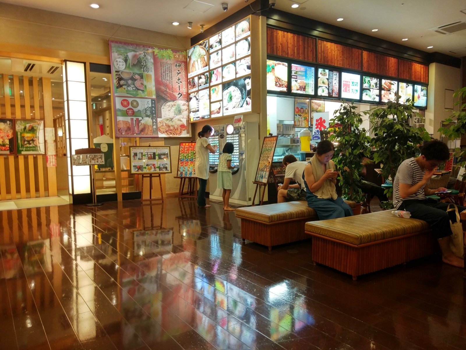 天然温泉浪速之汤营业到凌晨2点,1点前可以进场,注意毛巾提供是要掏钱的,也可以自带,洗发护发沐浴露则是免费提供。寄存鞋子和衣服都需要100日元,提前备好零钱或者到柜台换,之后取完衣服和鞋子会退回钱。
