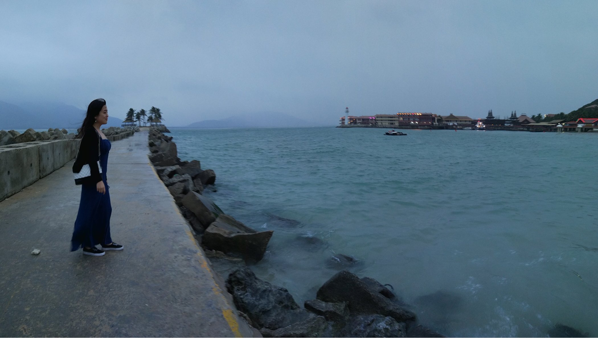 临近日落时的分界洲。我号称要早起看日出,麻麻提早起来把我叫醒,兴奋的说,太阳出来了。我激动的爬起来看到远处一动不动的黄色的光源。12月份得海南,真的很难遇到晴天。