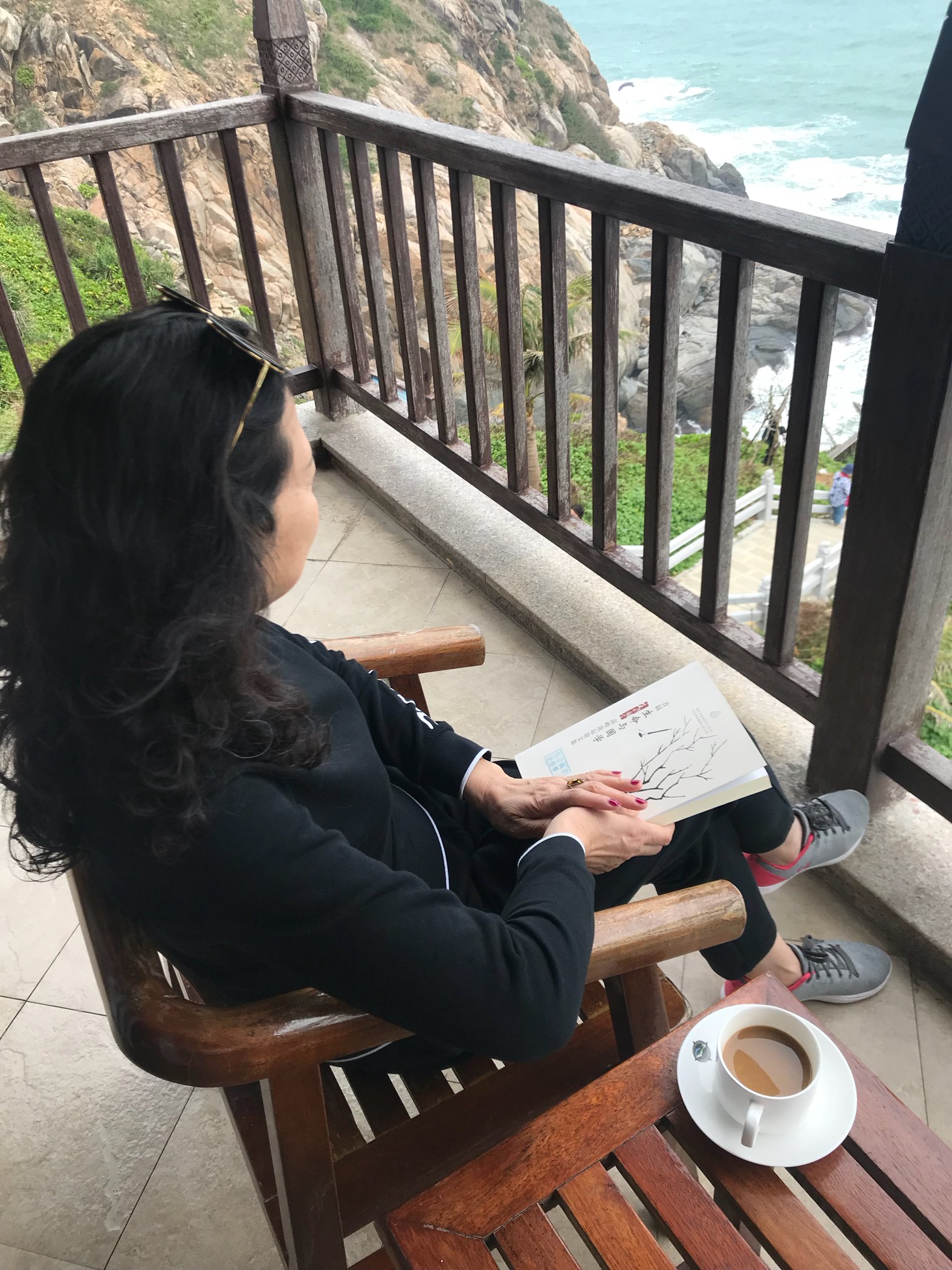 我说,我给你拍一张人家都知道咱住了海景房的照片…