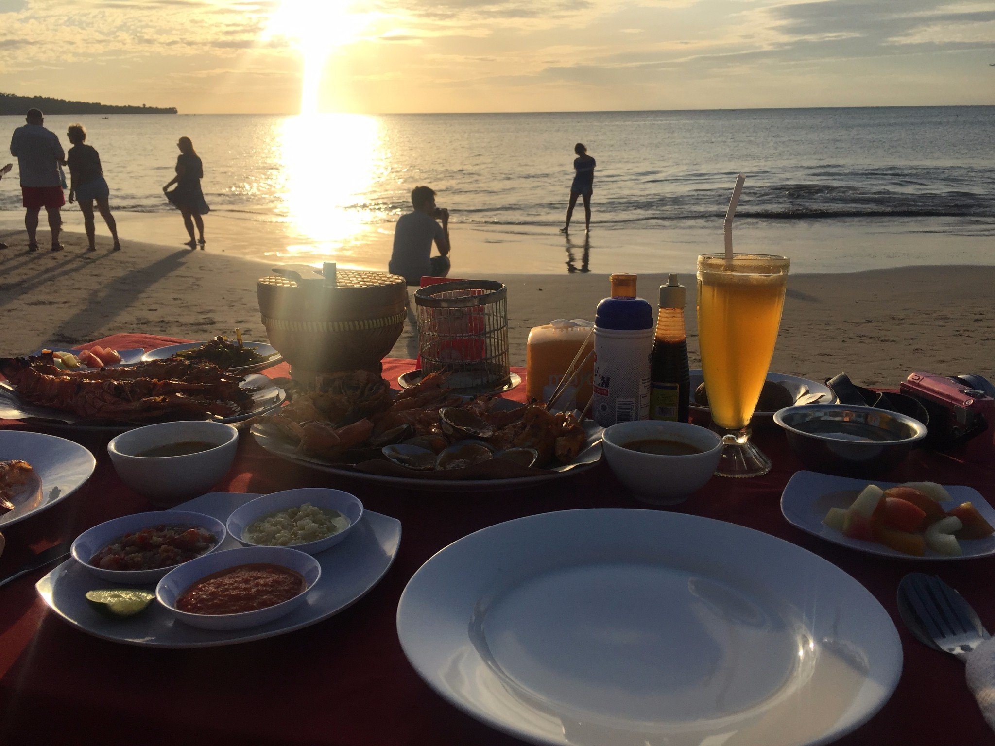 在金巴兰海湾的中段,选择了离海最近的位置,看着夕阳,吹着海风,吃着海鲜,十分惬意。点了一份双人海鲜餐,人均¥175元,不算便宜,但是有这样的美景作陪也是值得,这里离登巴萨机场车程20分钟,选择这里作为旅途的最后一程再合适不过了。