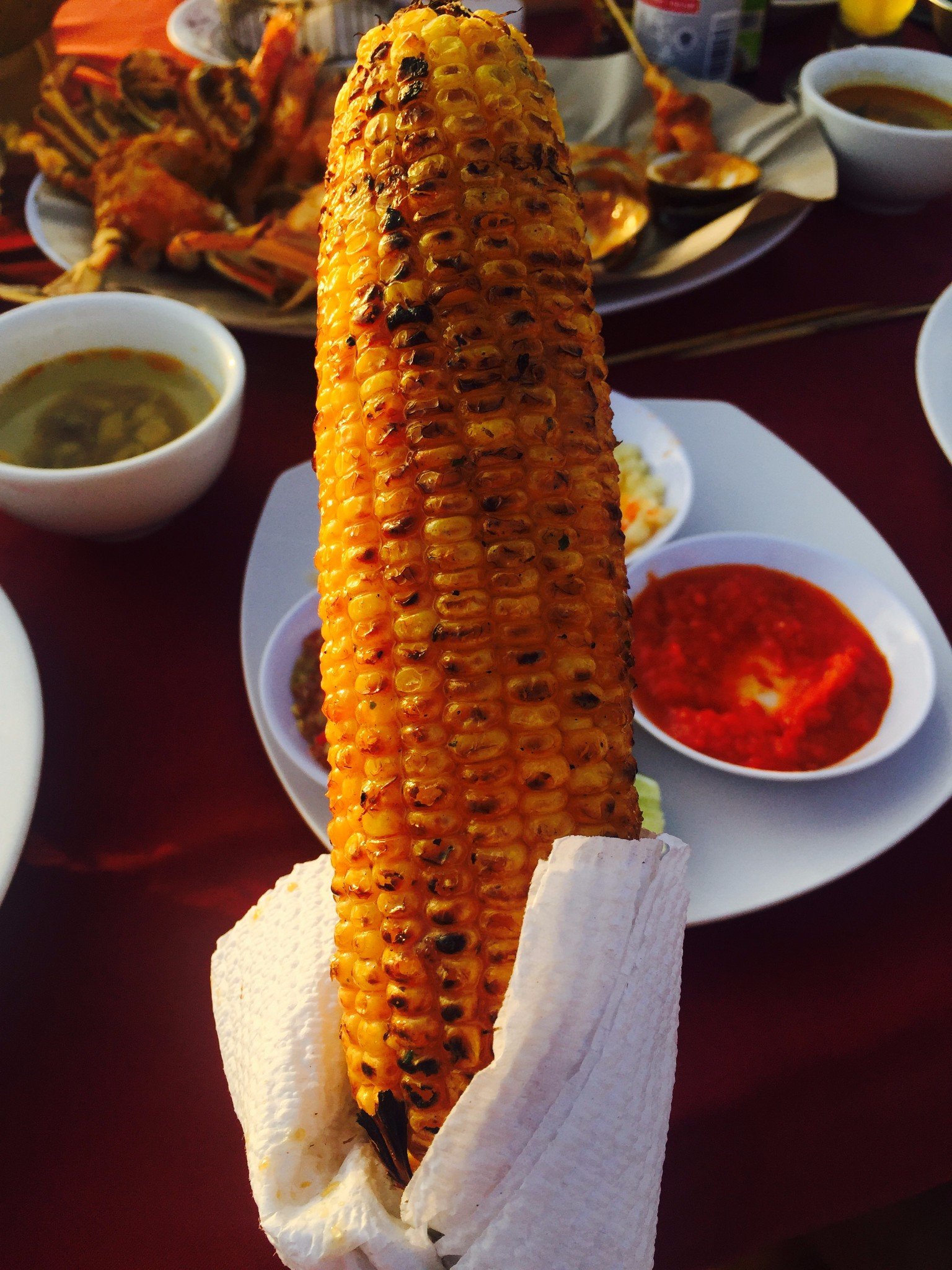 海滩边烤玉米超好吃!晚餐后,乘坐包车直接前往登巴萨机场。美食也自然少不了,金巴兰海鲜BBQ
