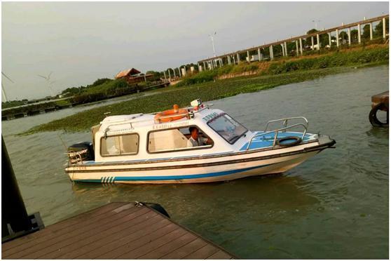 我们到之后,停好车,就打电话给阿瘦蟹庄的老板,老板就开着快艇来把我们接去了。