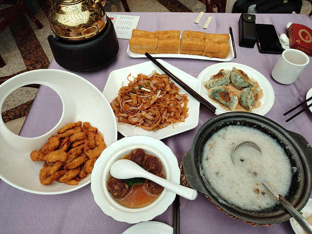 有半年没去邕江宾馆阳光城喝早茶了,昨天去了,还是一样的好吃,韭菜煎饺、皮蛋瘦肉粥、油条、牛肉丸、酥肉、炒牛河等,都是我喜欢的。油条没吃完,我打包回家,沾牛杂汁吃,口感与众不同。