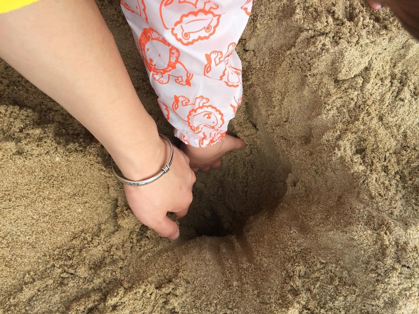 ...以找到很多寄居蟹,我们三开始一边挖螃蟹一边做沙子城堡,糖糖开心坏了,每次抓到螃蟹就快乐得蹦起来