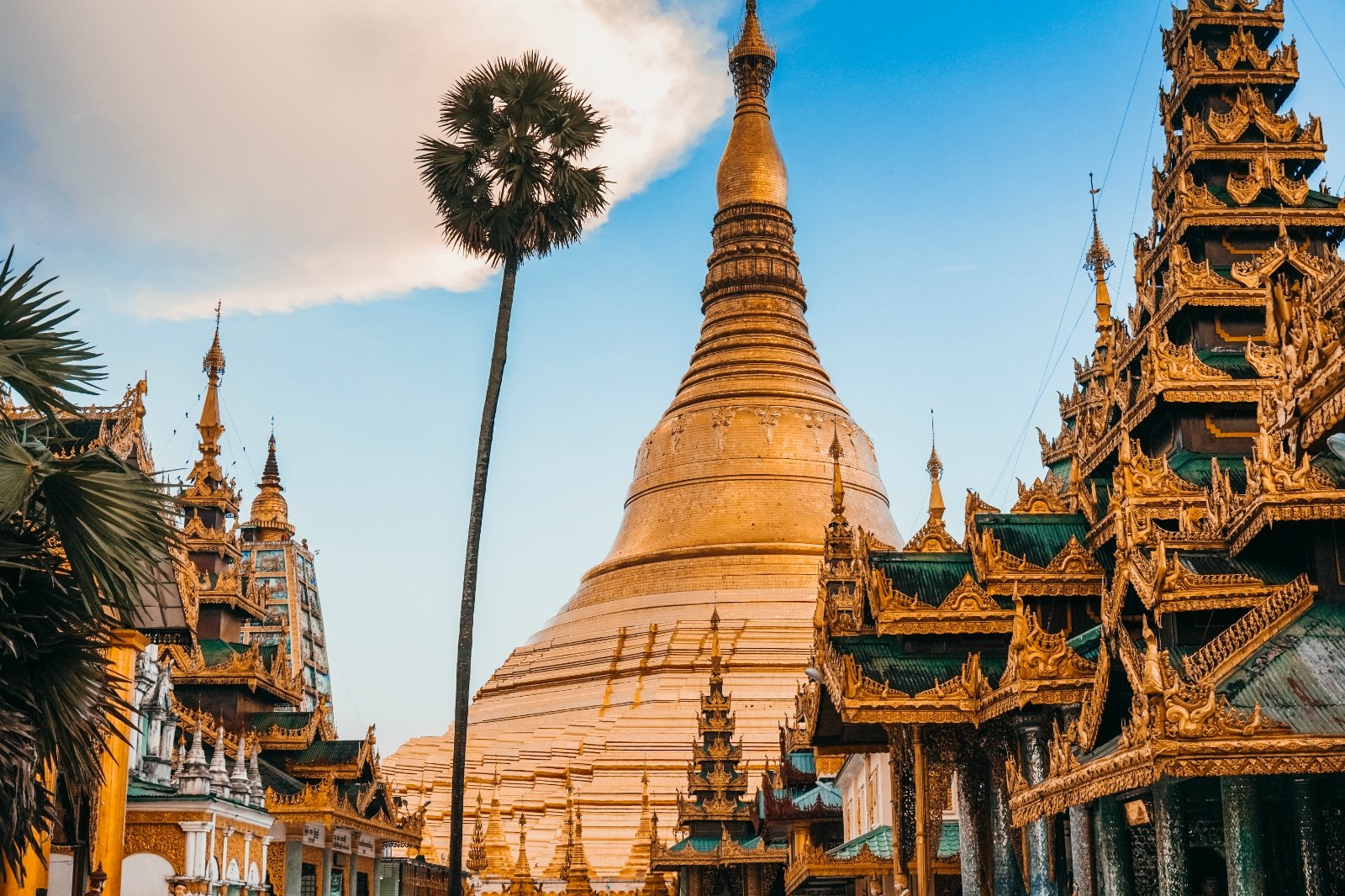 这是一座高98米金碧辉煌的佛塔。它与柬埔寨的吴哥窟、印度尼西亚的婆罗浮屠一起,被誉为“东南亚三大古迹”,再加上中国的万里长城和印度的泰姬·马哈尔陵,统称为“东方五大奇观”。