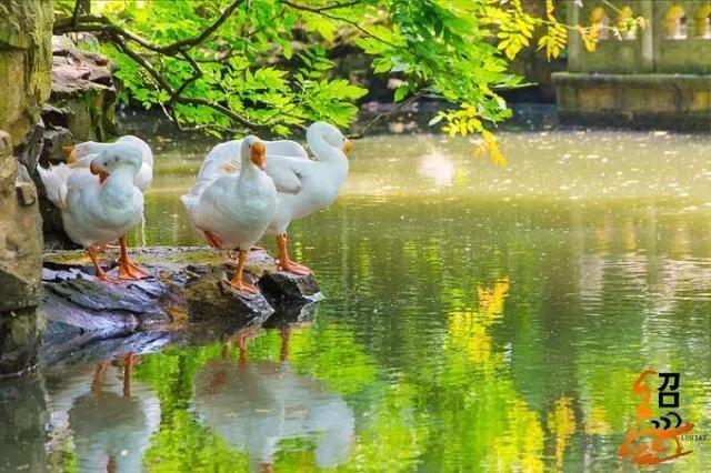 鹅池用地规划优美而富变化,四周绿意盎然,池内常见鹅只成群,悠游自在。