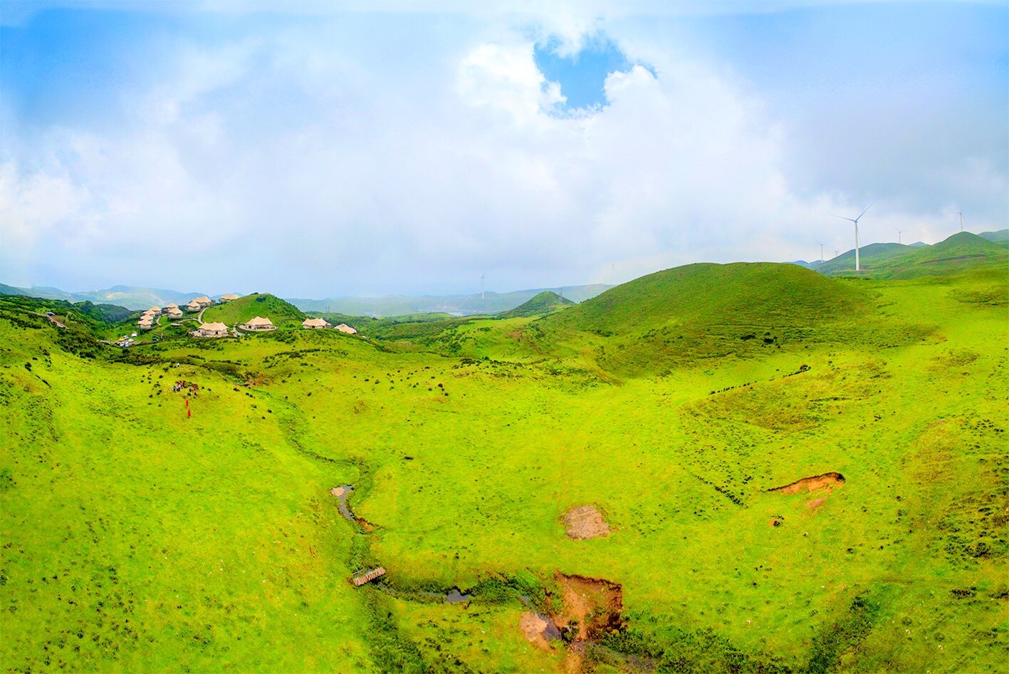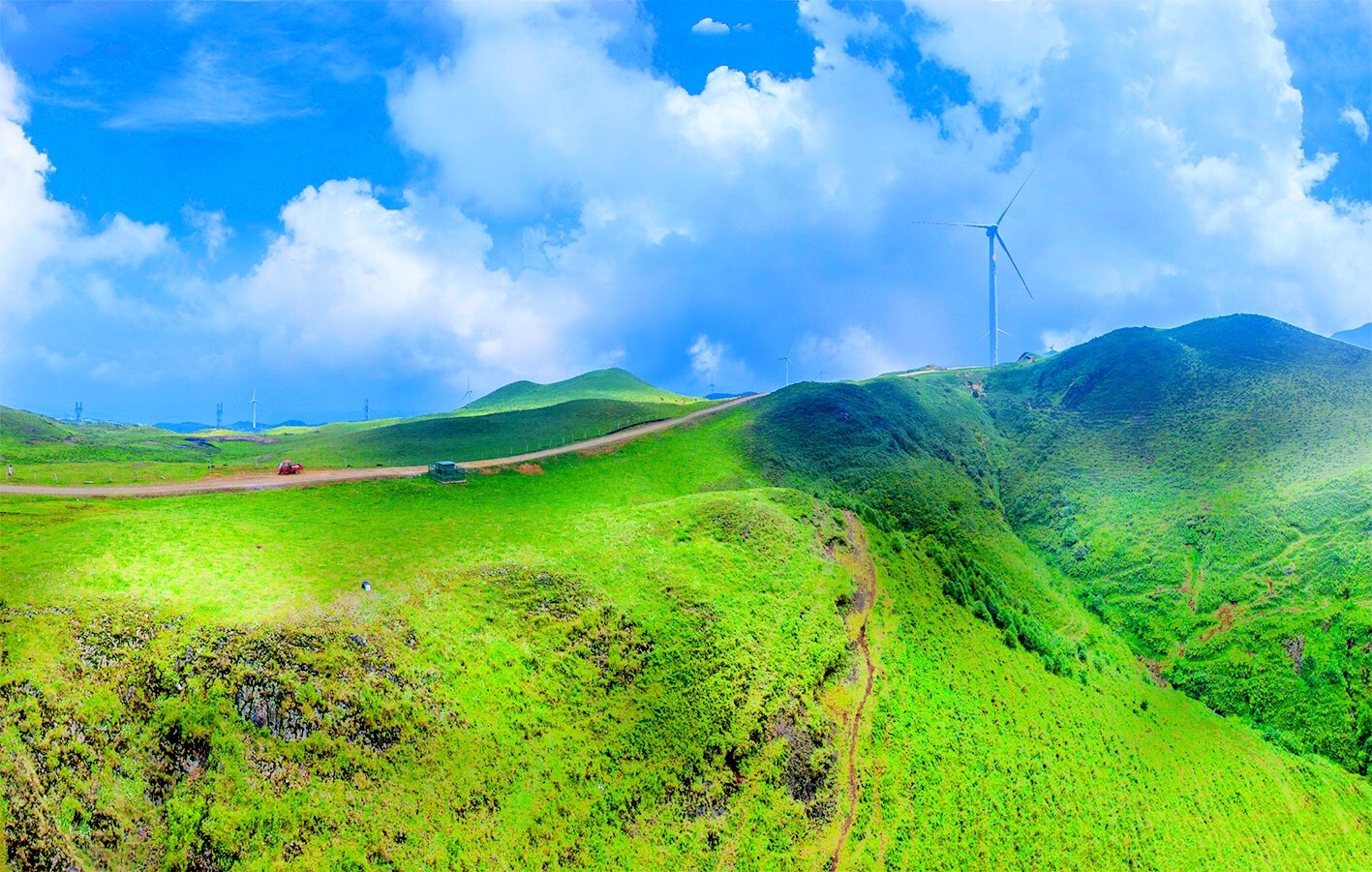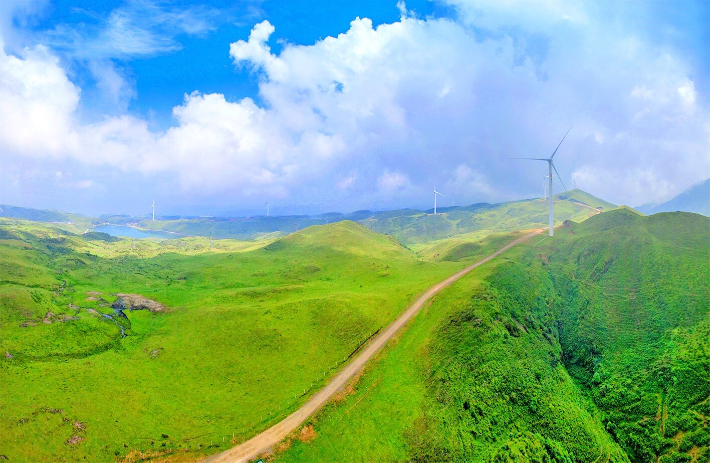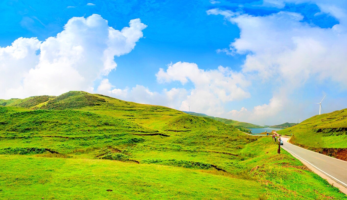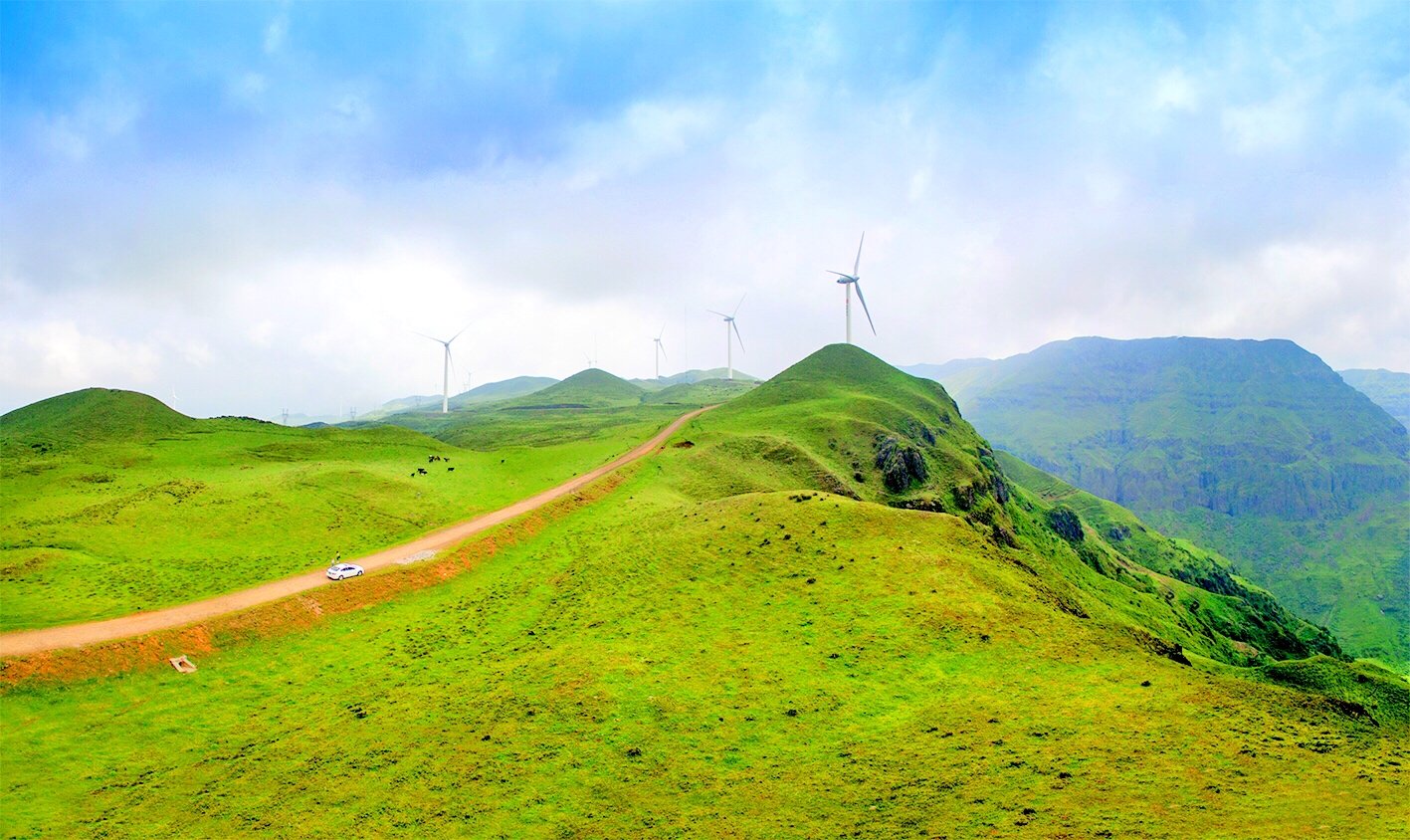 在乌蒙大草原上,最有特色的就是一台台迎风而舞风车,清晨的高山草原,风车飞转,似在欢迎远方宾客。在这里,我们可俯瞰绵延峻岭,也可仰望旋转风车,体验高山草原的惬意。