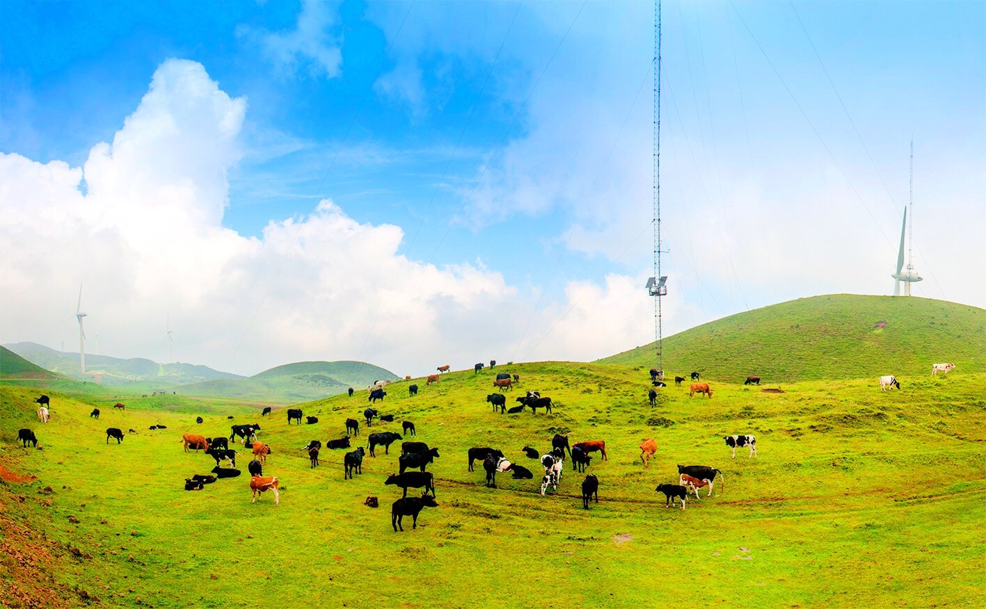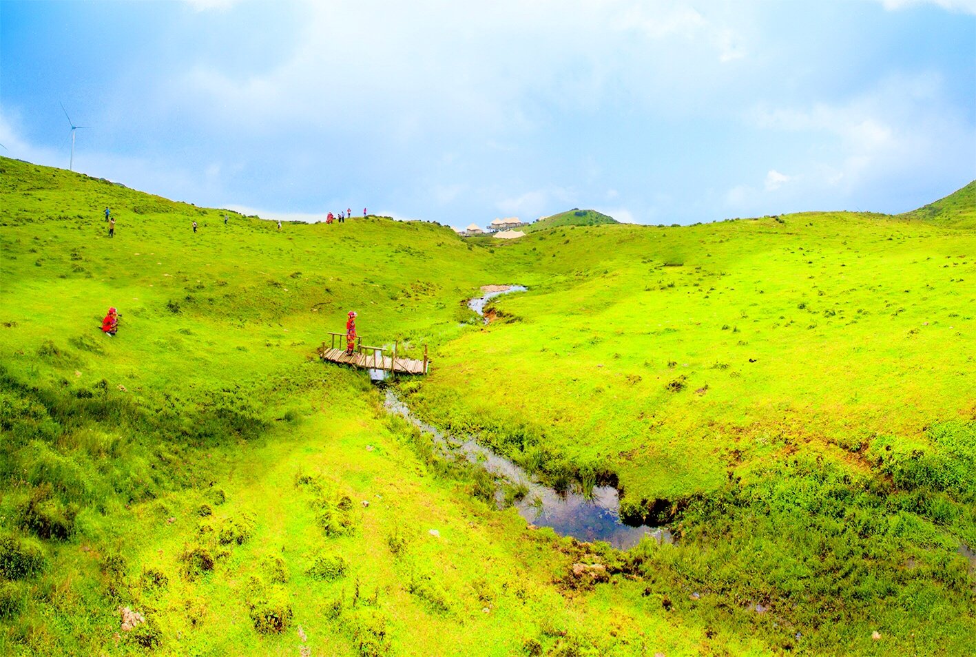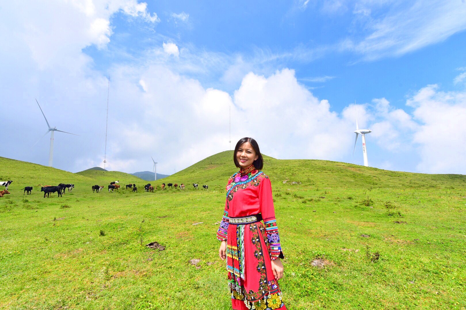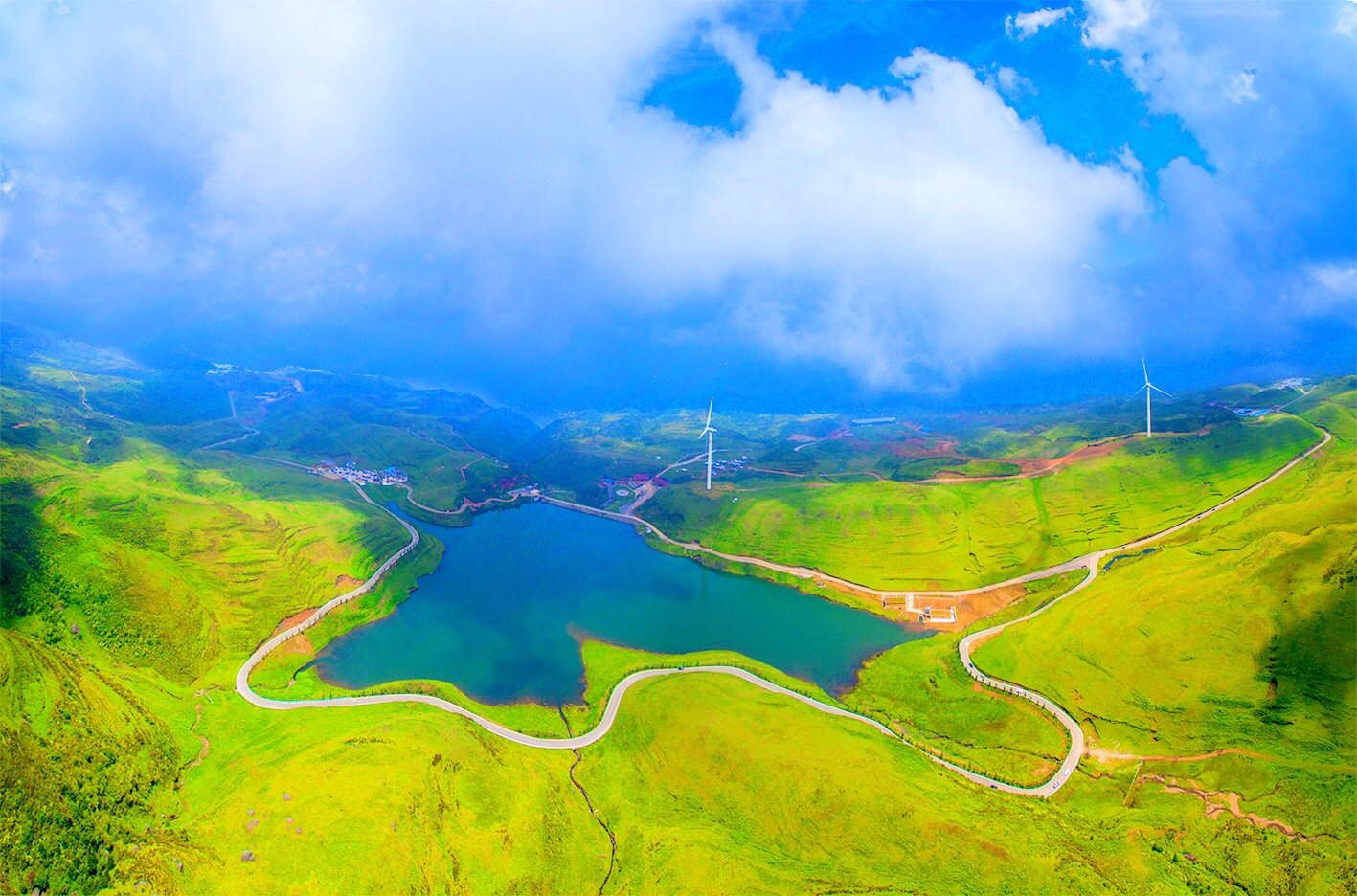 在乌蒙大草原上,最有特色的就是一台台迎风而舞风车,清晨的高山草原,风车飞转,似在欢迎远方宾客。在这里,我们可俯瞰绵延峻岭,也可仰望旋转风车,体验高山草原的惬意。