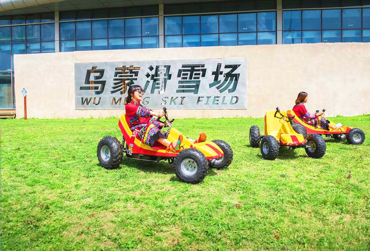 第一次玩滑草,原来是这样的感觉。就好像在山上开碰碰车一样,坐着简易可爱的小车,自己把着方向盘,在不是很平坦的草地上颠簸前进。最刺激的要数斜坡滑道,在草原上疾驰而下的感觉,明朗奔放。来的朋友一定要体验一下哦!