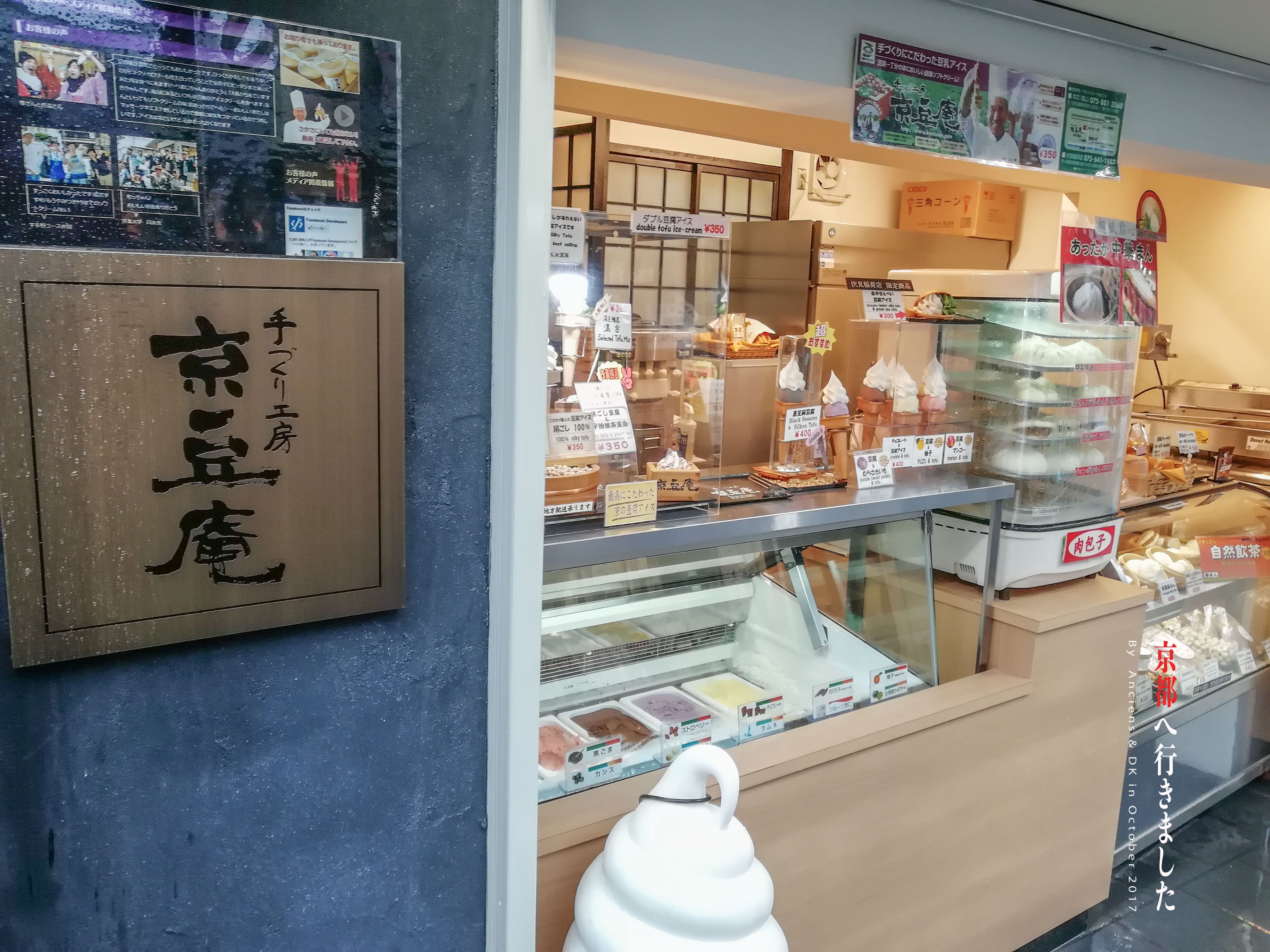 京豆庵(伏见稻荷店)在去伏见稻荷大社路上必经之路上,远远地就可以看到写着“京豆庵”的广告招牌和冰淇淋雕塑。小小的店面,种类非常丰富,有冰淇淋、甜甜圈、蛋筒、布丁等等。