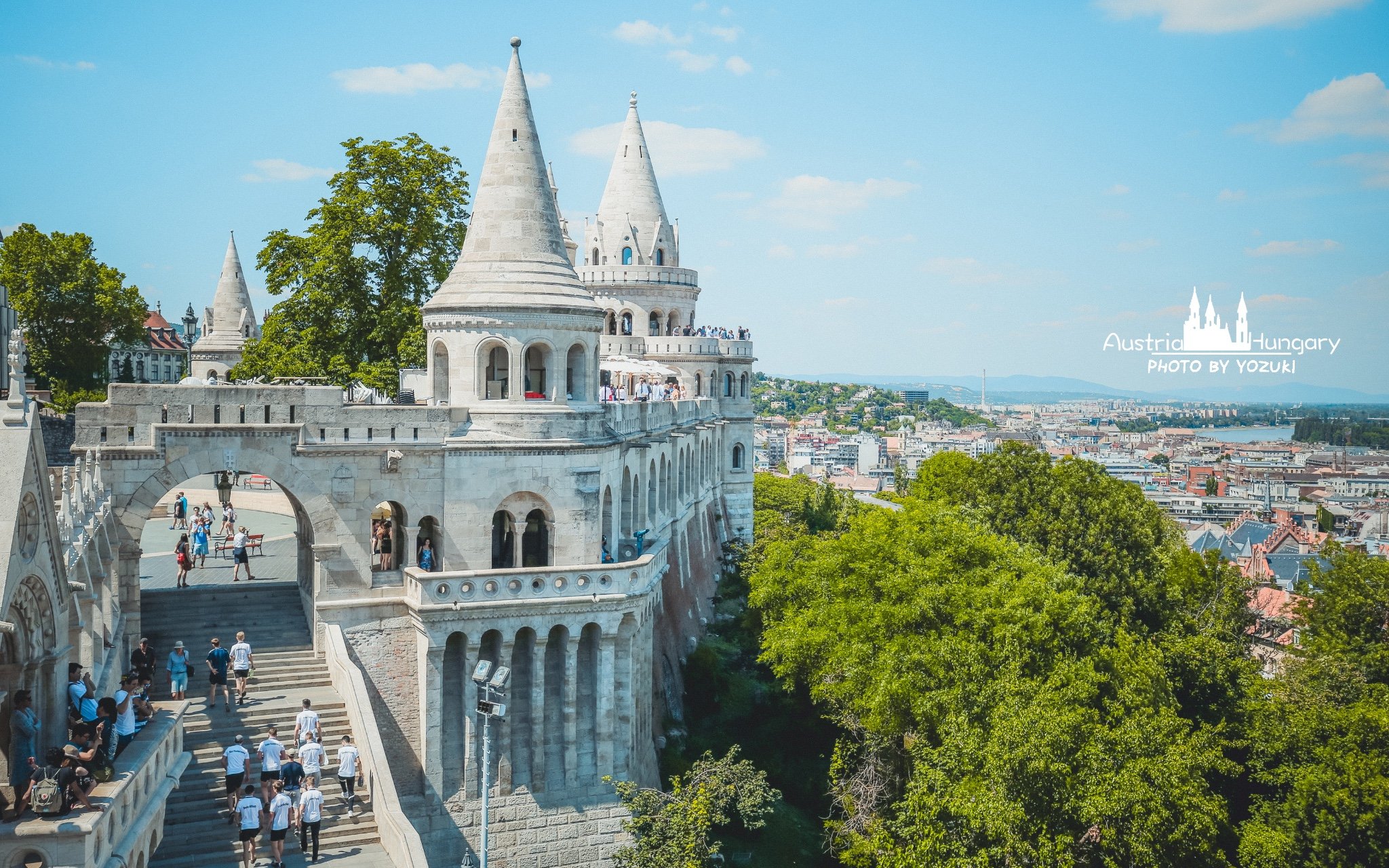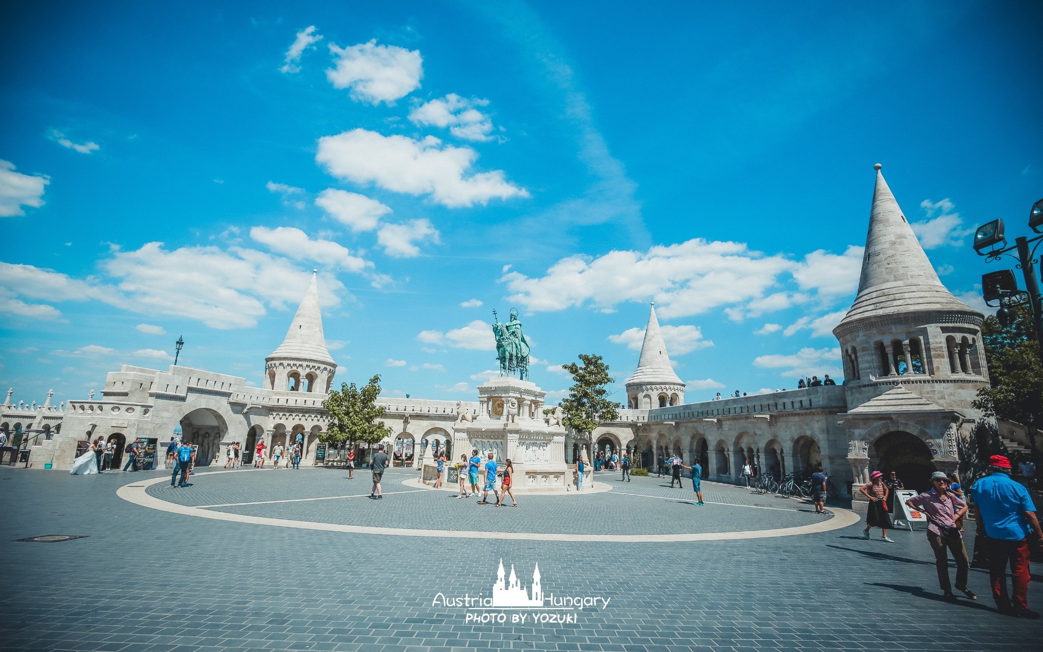 一座不太对称的城堡,圆圆尖尖的屋顶就像是巫师帽,乳白色的外墙,就像牛轧糖一样。渔人堡是布达比较热门的景点,前方有一片很大的广场,旁边就是漂亮的马加什教堂