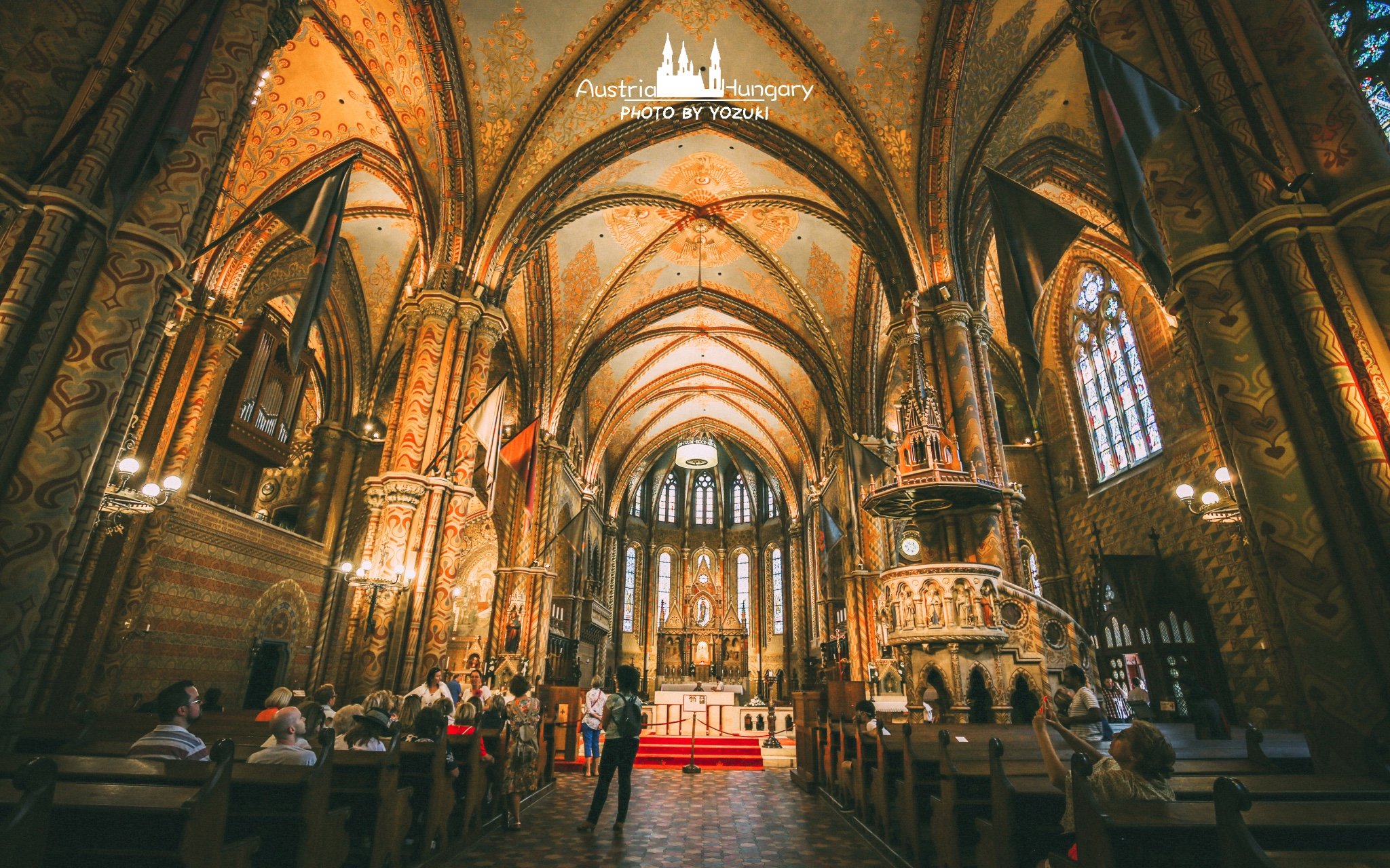 这一片的建筑都很大气,马加什教堂在我看来,远比维也纳的教堂要气派,高高的钟楼修建在教堂的一侧,直冲云霄,外墙也是乳白色的,彩色的屋顶璀璨生辉,在阳光下,有时都无法正面直视。