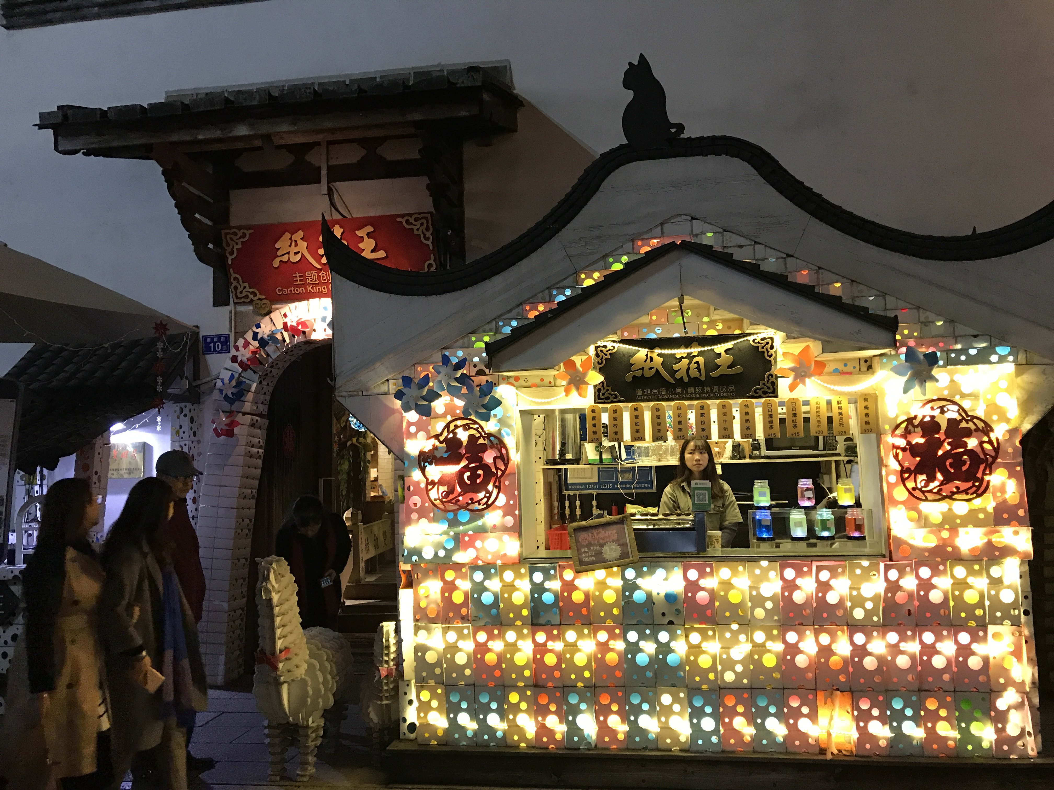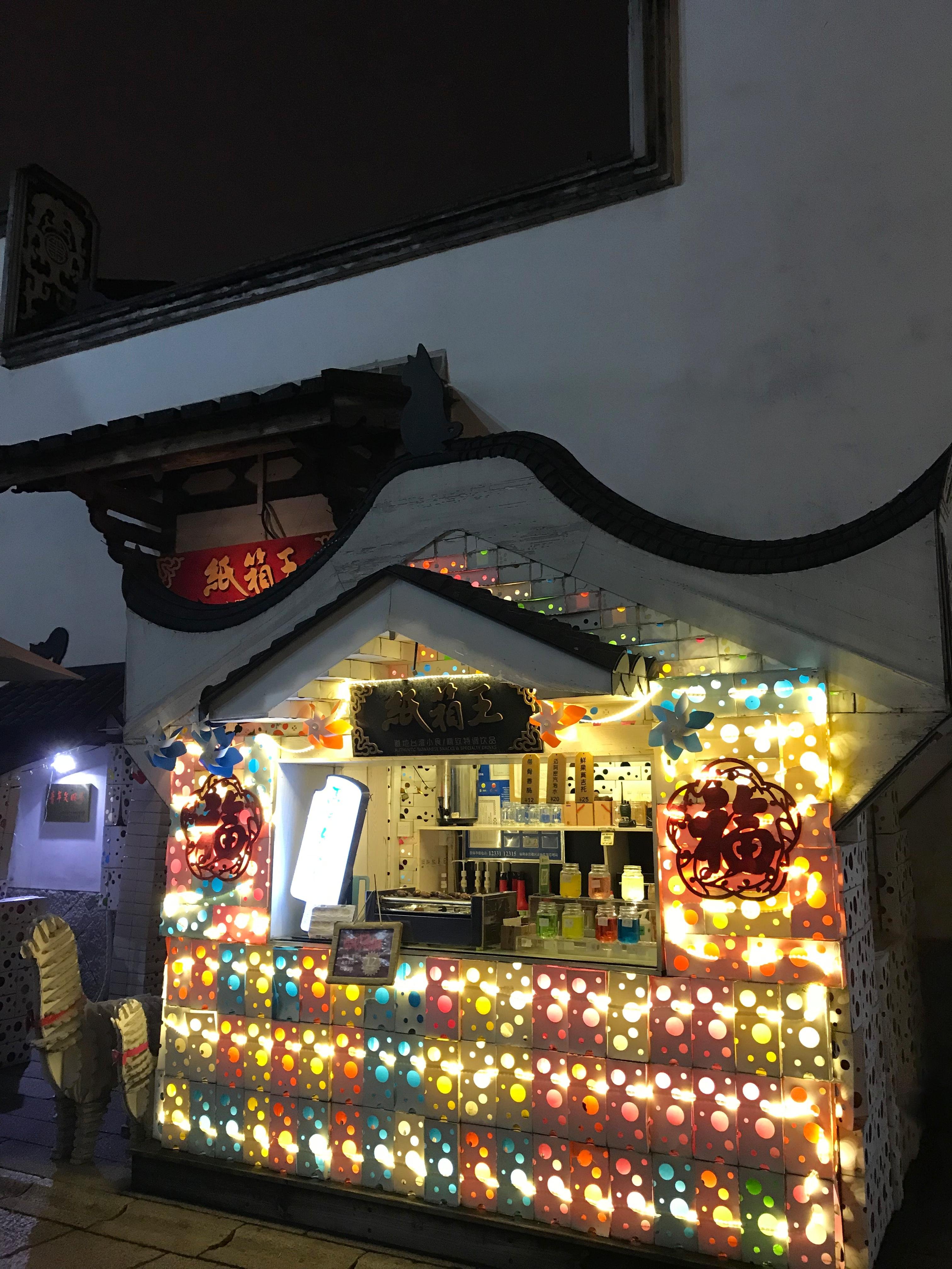 三坊七巷的这家纸箱王,位于福州市鼓楼区南后街10号。里面有许多设计团队搭建起来的具有福州特色的场景,如三坊七巷的各种牌坊、双抛桥、榕树等(如图),值得一提的是,每一处场景都是团队手工一片片用纸张黏贴起来的,工作量巨大,也十分耗时,但效果实在逼真有趣。