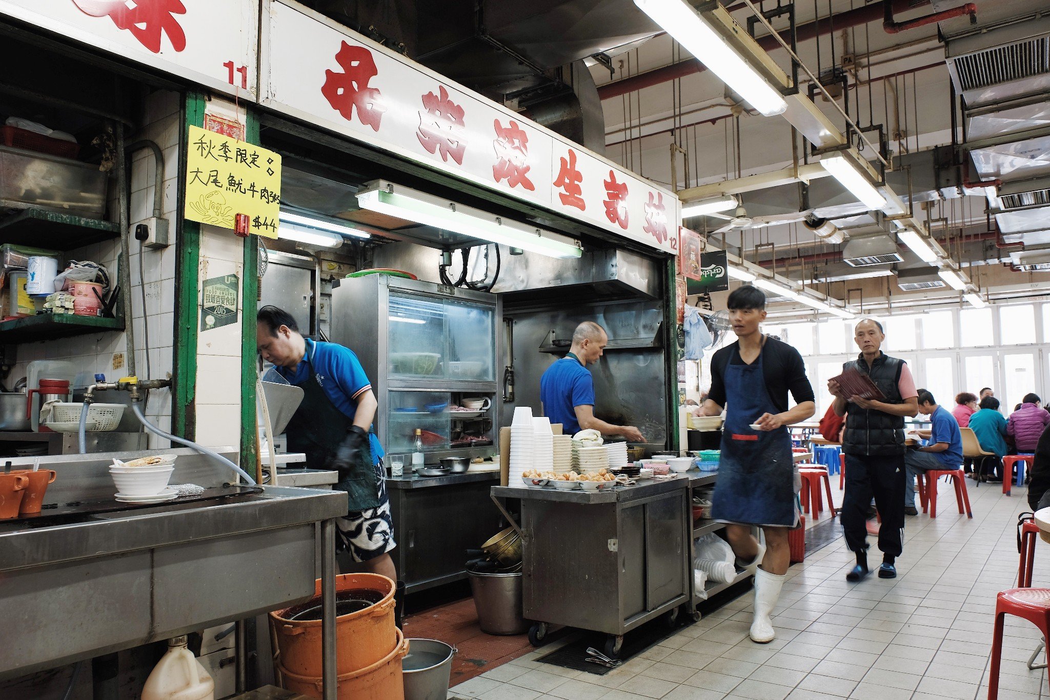 香港大街小巷边的茶餐厅吃得多,但在市政大夏里 菜市场旁里吃粥你又试过没呢?香港的熟食中心是普通百姓日常的“饭堂” 价廉物美、方便快捷。位置比较难觅,游客自然少之又少。绝大多数都是港人。圆枱红櫈就是这么简单。