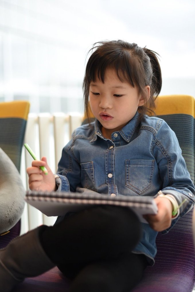 一般每次旅行我都会带画册和画笔,这样可以尽量减少小朋友无聊的时光,也容易让她安静下来,这不,其他小朋友走了之后,她就一个人安安静静得坐下来画画了