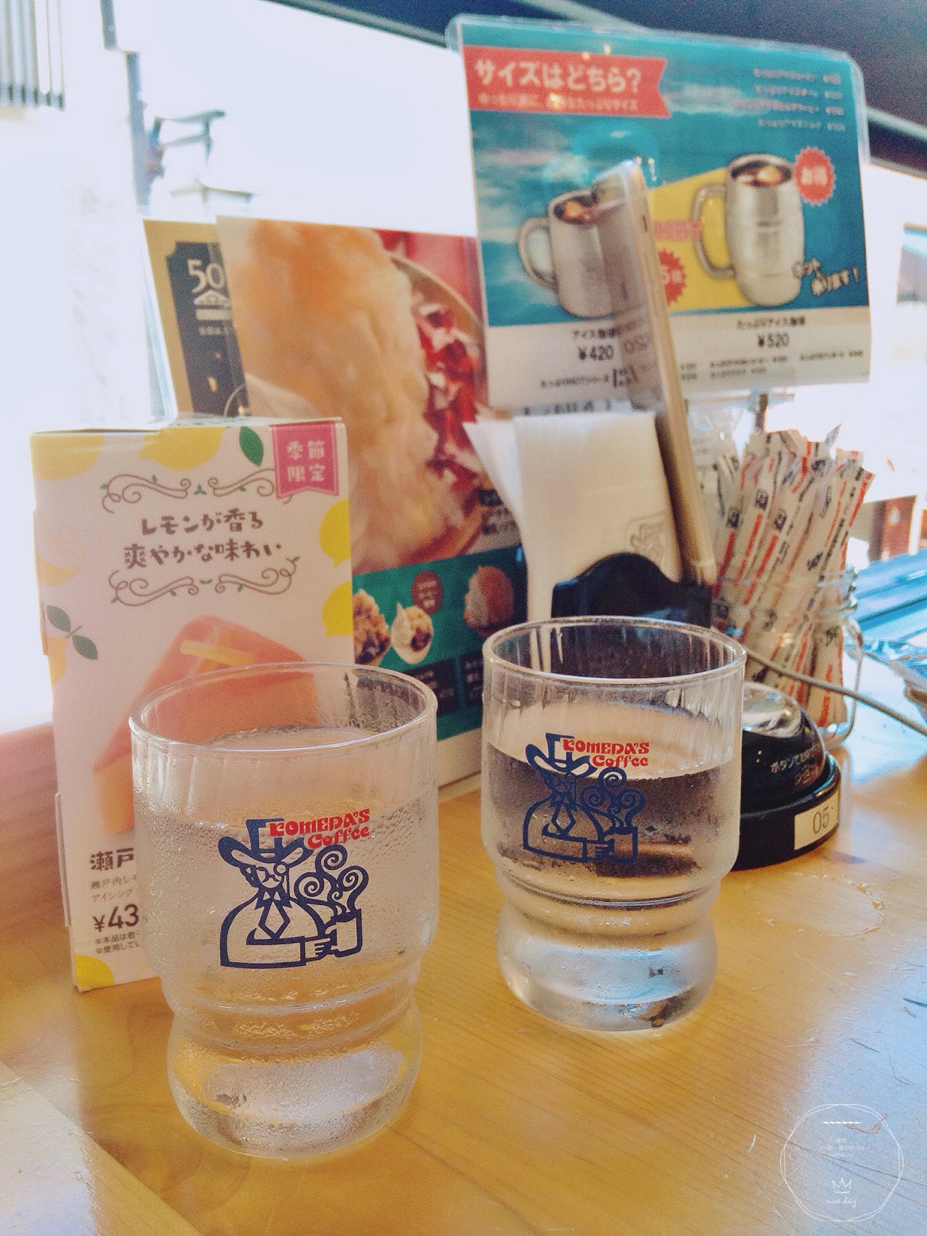 吃完午饭,我们都习惯喝点咖啡饮料什么的。原本在渍物小店对面就有一家看起来不错的咖啡厅,结果一看大爆满,还要等一会儿位子,果断换一家。回到主街,斜对面有一家并不张扬的咖啡店叫“KOMEDA’S COFFEE”。店饰不华丽,连桌子都看得到原木的纹理。结果拉到menu的时候小小惊讶一番,咖啡和蛋糕都是良心价,几乎都比国内星巴克的价位还要低一些,看中的两款蛋糕都是不到人民币二十块。