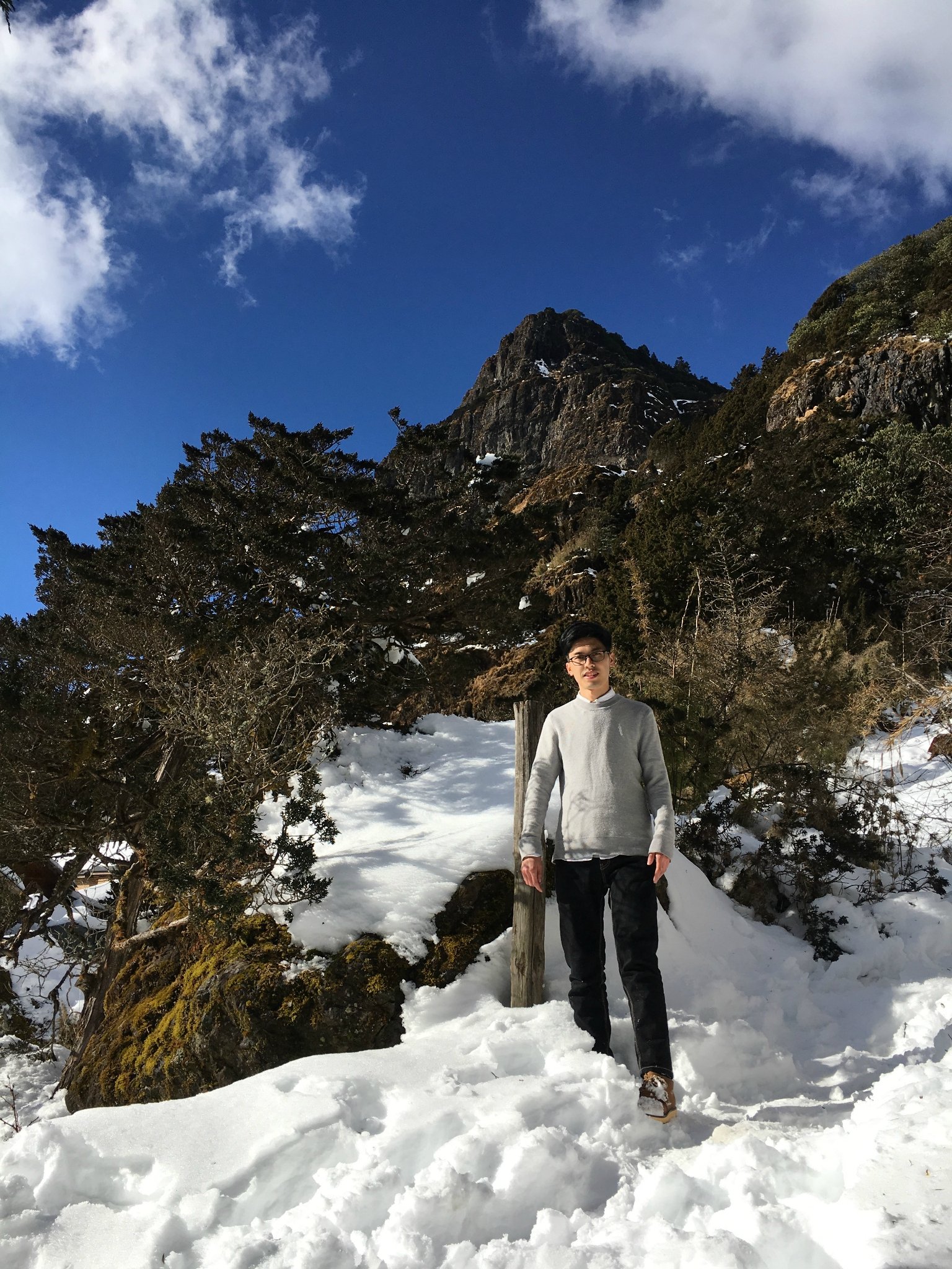 你从雪山上走下来,满眼不同层次的绿错落着色彩,呼唤着你的爱,你却独爱这裤脚鞋边不融的纯白,在光影中透出深邃的天籁,看尽人往人来,此情不改。