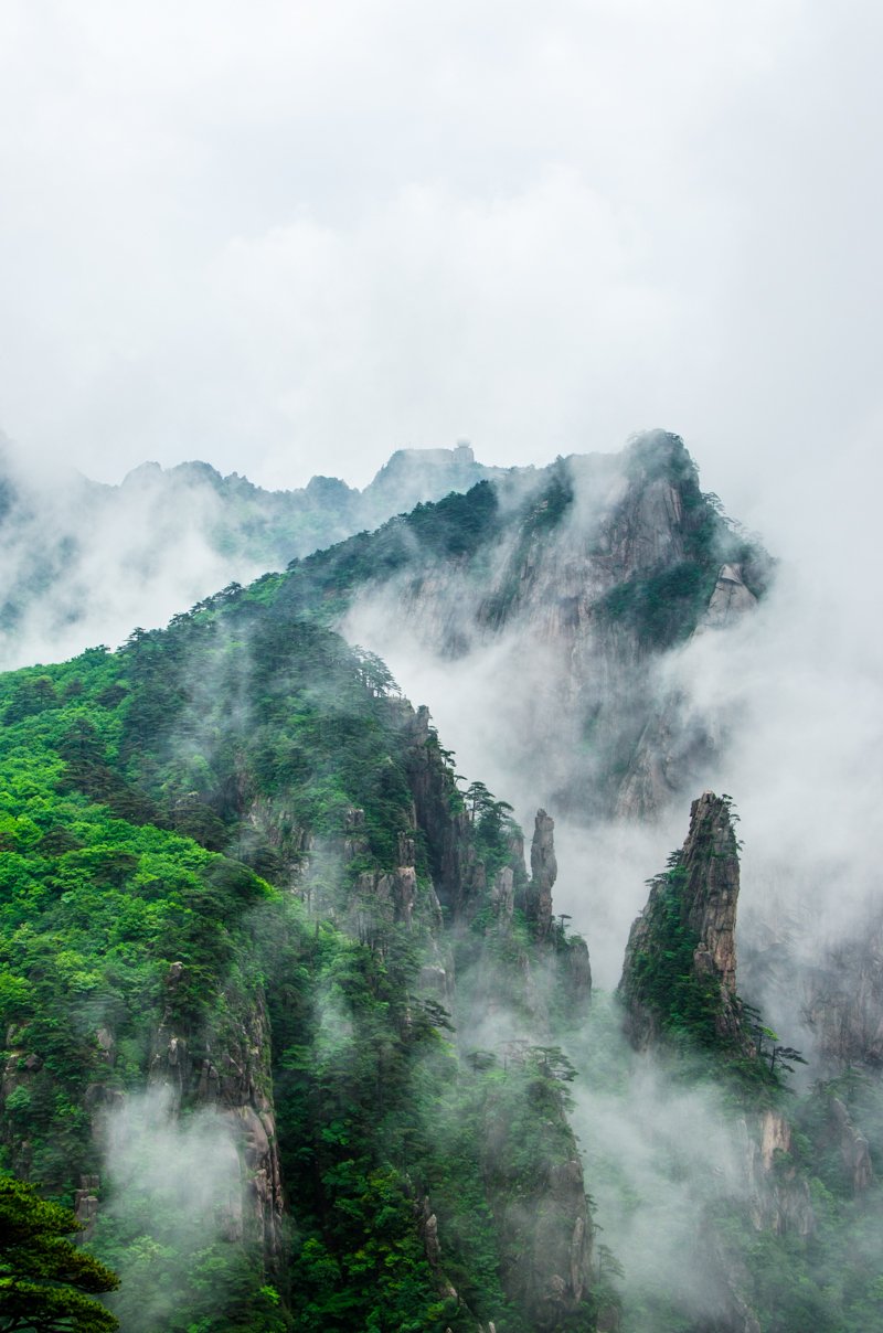 白色的云雾环绕在青山之上,宛如仙境,给让难得的视觉体验。所以,黄山是非常值得一去的地方