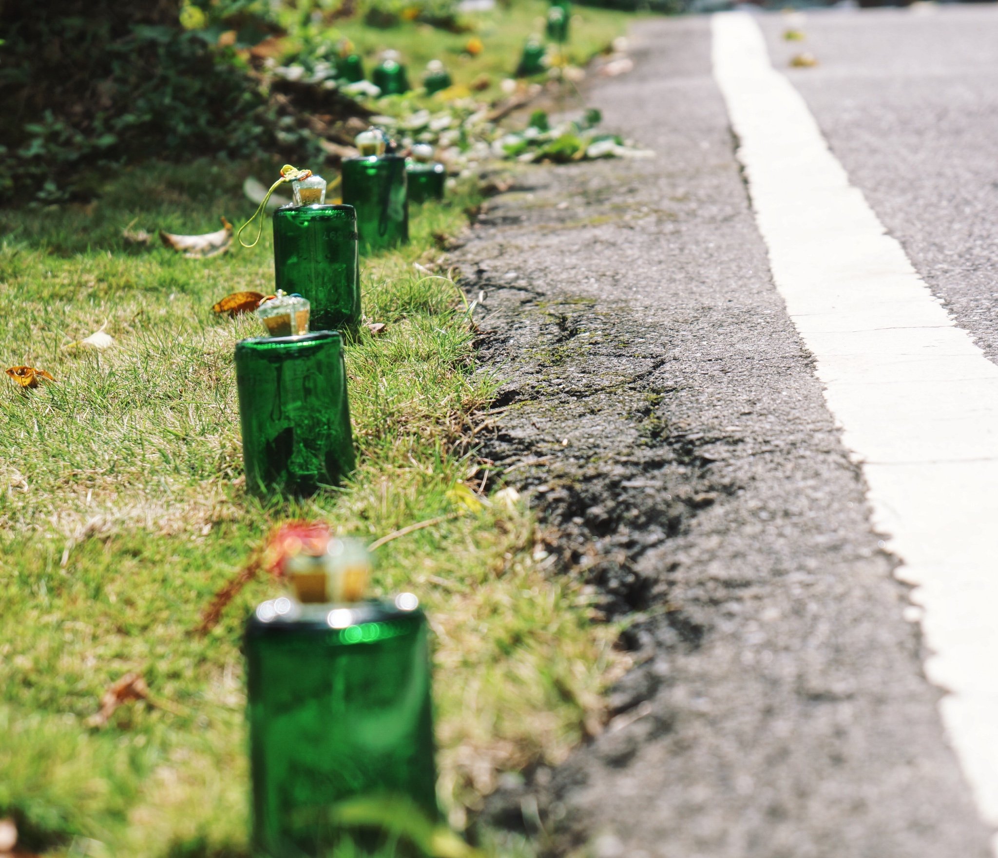 平溪站通往小山坡上观音庙的小路,路边上很有创意的都是玻璃瓶~