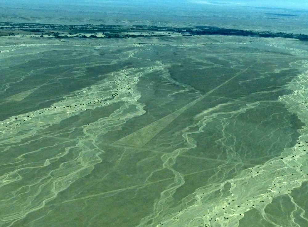 乘坐小型飞机在空中观赏世界神奇之迷的大地画(空中时间约30分钟),就是下面照片这个区域。据考古研究表明,纳斯卡大地画形成于公元前500至公元500年间,整个地画分布在四百平方公里范围内,它是迄今为止发现的世界上最大的大地之画。其中有的图形大至上千米,有各种图形,如三角形、长方形、梯形、螺旋形,还有各种动物、植物和人类图形。