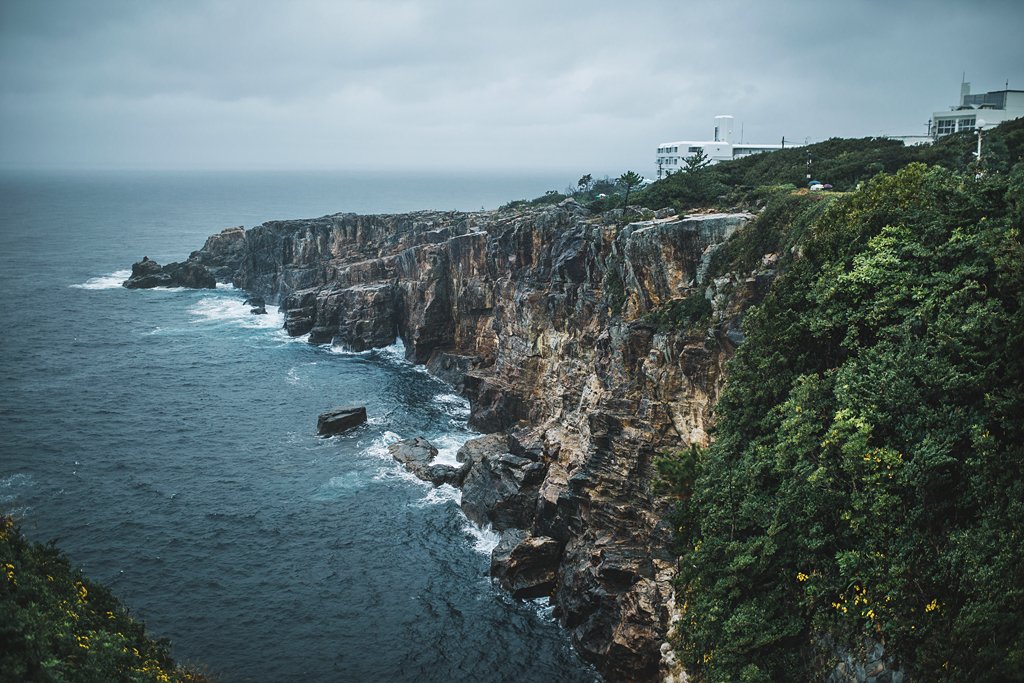 离千畳敷不远还有一处叫三段壁的景点,那是一处伸向海中达2公里,高出海面50米的断崖。据说在春季,上涨的潮水拍打悬崖,看起来惊心动魄。