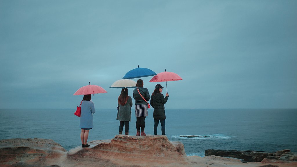 眼前灰蒙蒙那一片应该就是太平洋了。太平洋应该是蔚蓝的,只是在雨中阴沉沉地失去了颜色,合着妹子们不算苗条的背影,老板,来一首“伤心太平洋可好”