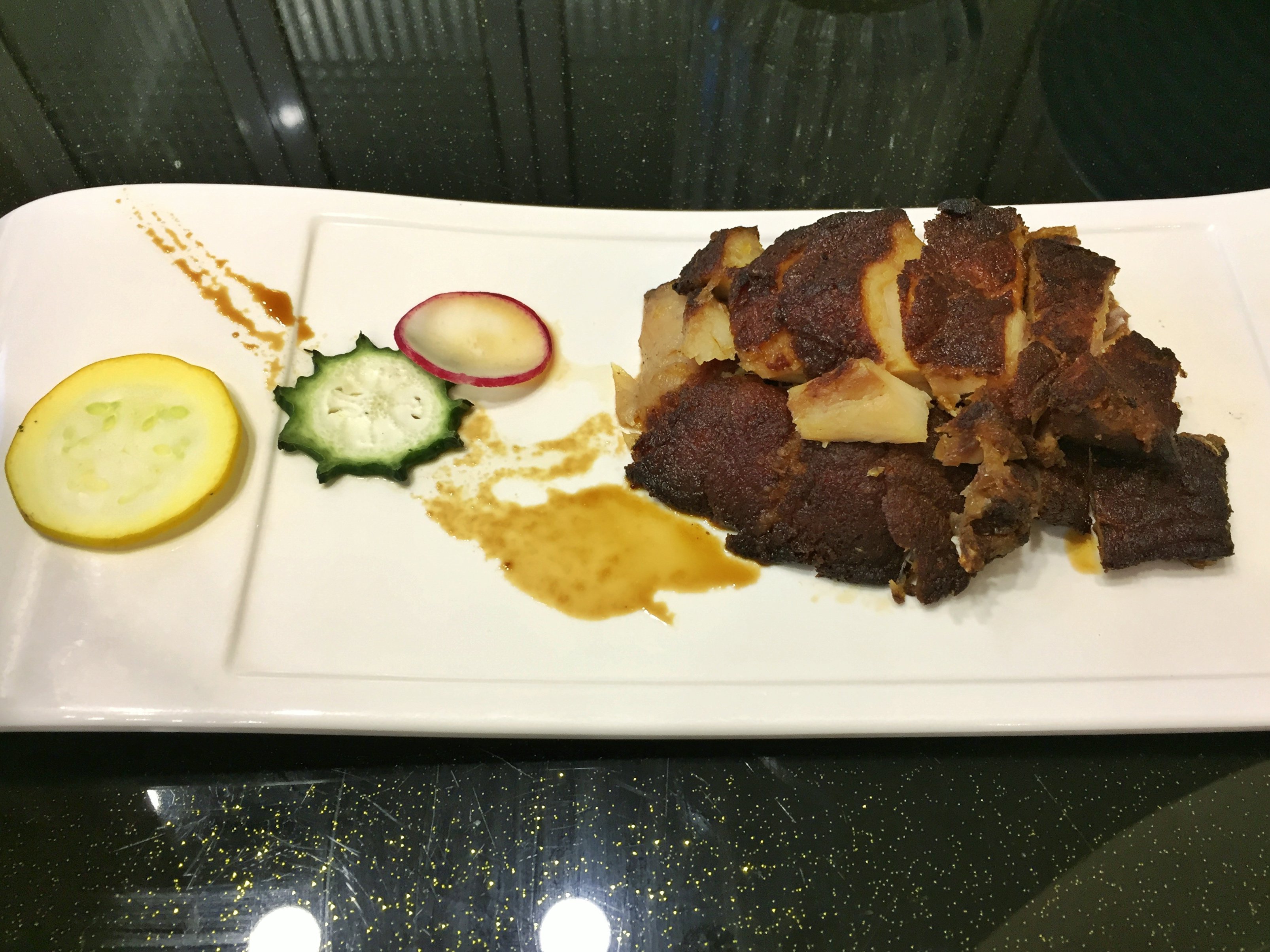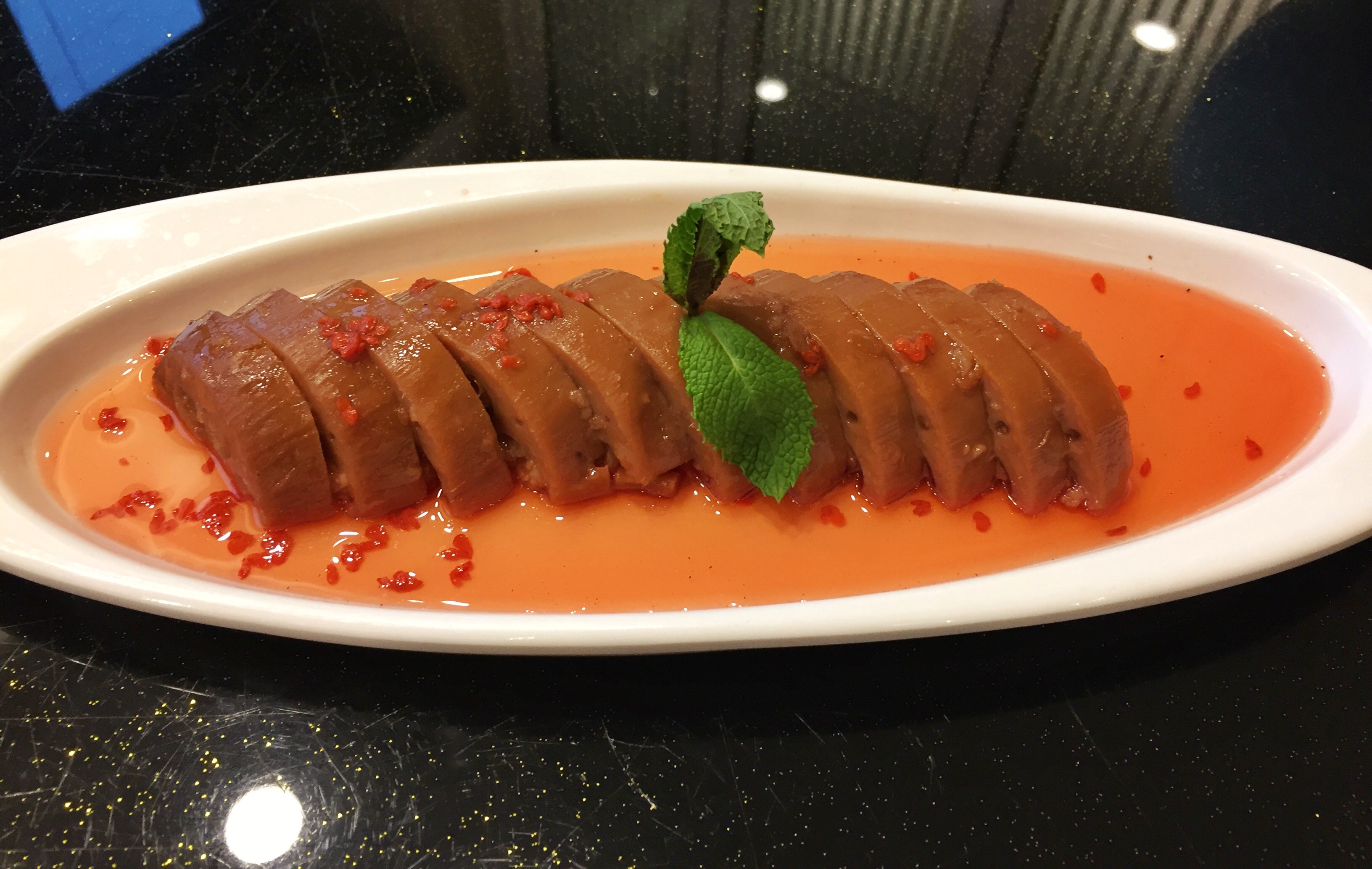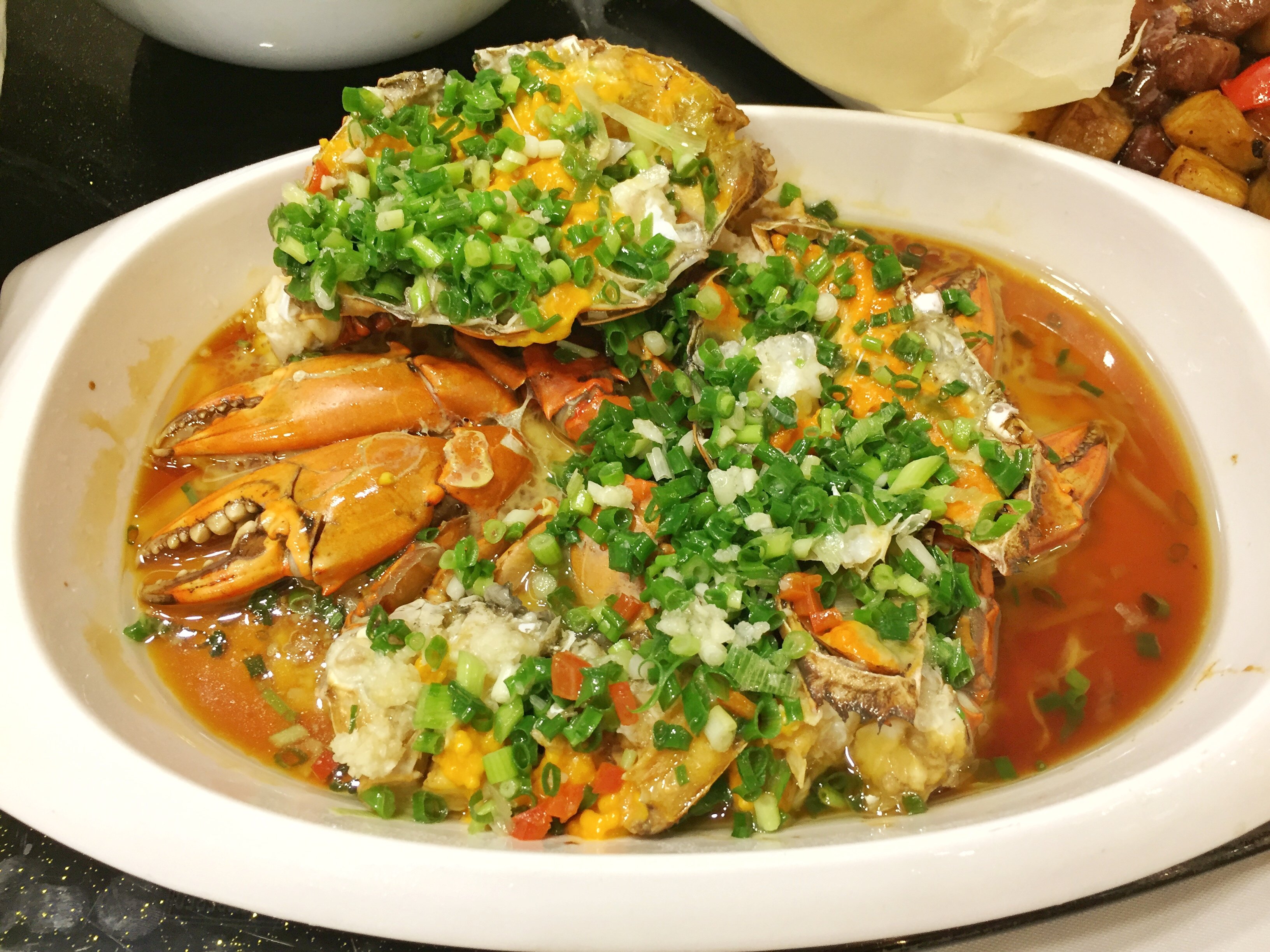杭帮菜的味道还是偏清淡偏甜一些,点了他们家的几款招牌菜,其他的便依照口味随便来了几道。双椒蒸蛏子还不错,清蒸海鲜海鲜很新鲜,再撒上满满的一层红绿椒和葱花,味道不错。桂花糖藕也是杭帮菜的一道经典,自然少不了,糯糯的莲藕中裹入糯米,甜而不腻。他们家的红烧肉也留下了很深的印象,上海风味招牌,肥而不腻,味道偏甜,整整一大块,入味十足,喜欢这种大口吃肉的畅快感。