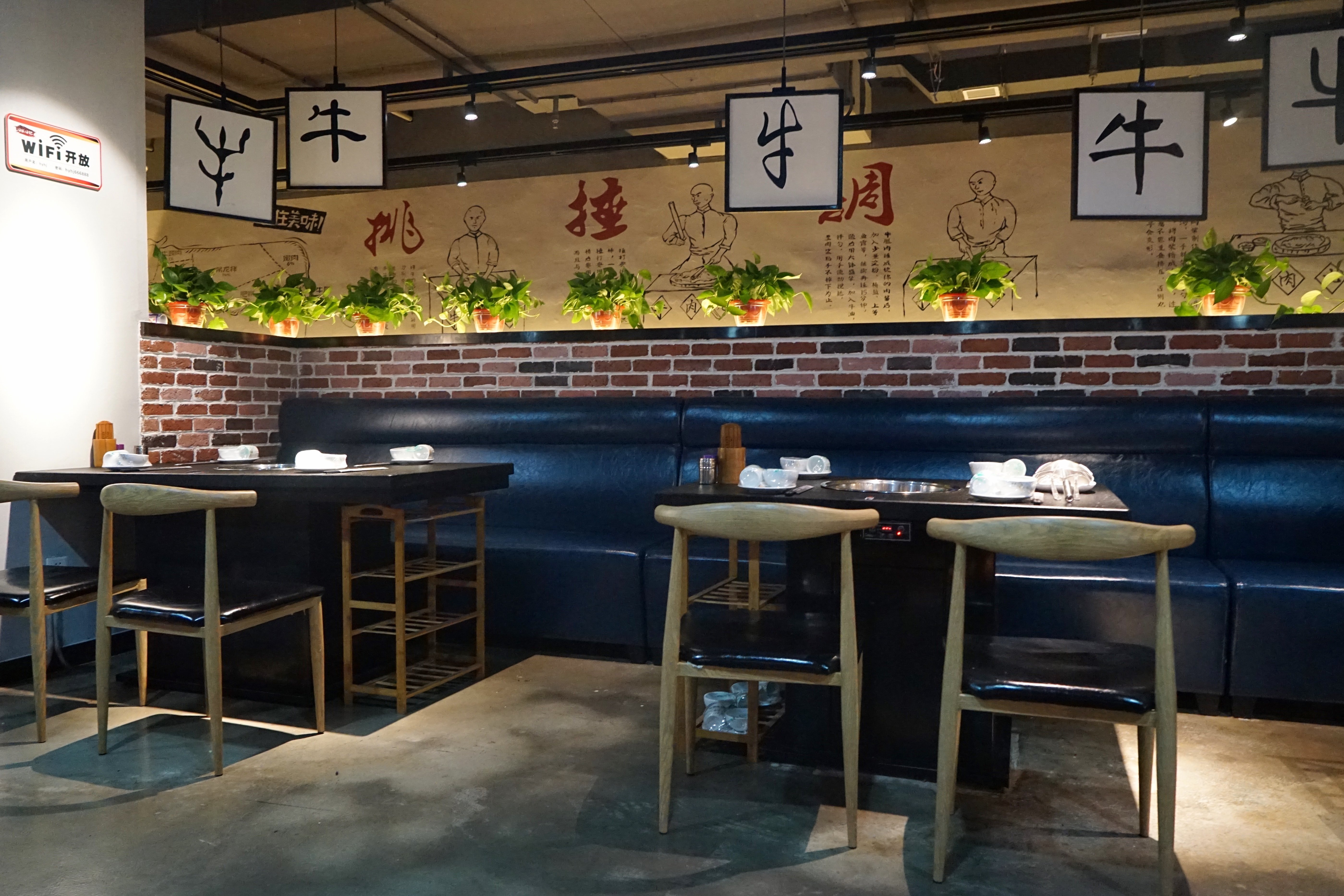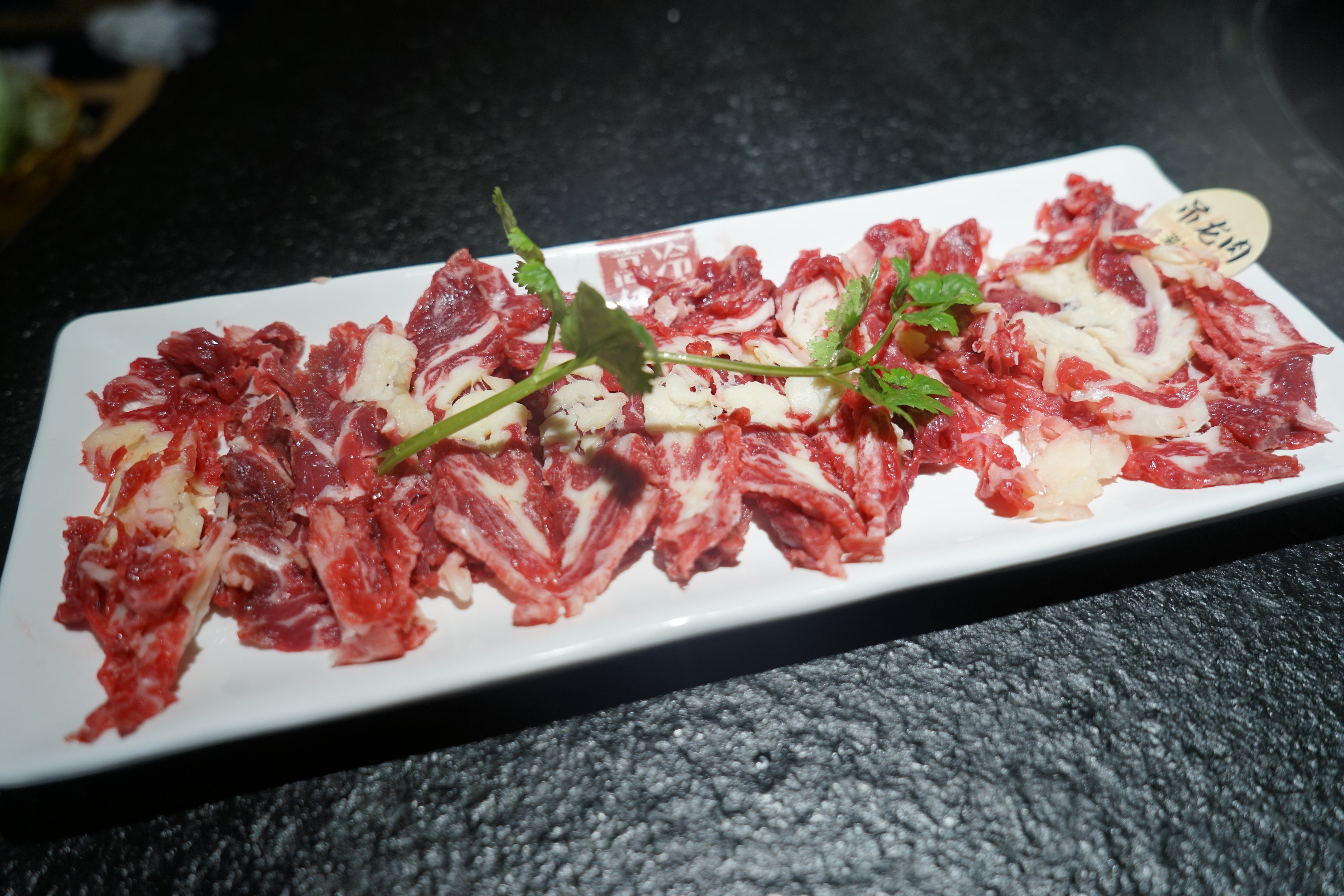 第一次吃,这么多的选择摆在面前,也是犯了难。于是只好看着网上大家的推荐来点餐了,选择了最多人点的吊龙、牛筋丸、牛腩,操作台透明玻璃,工序一览无余,工作人员在档前刀起刀落,运刀如风,娴熟的切肉。吊龙肉质很嫩,三起三落,大概13秒的涮肉时长,肉质偏肥一些。牛筋丸的味道确实地道,在鲜嫩的牛肉中,加入了一些嫩筋,嚼劲十足。牛腩中规中矩,煮久一点口感更佳。