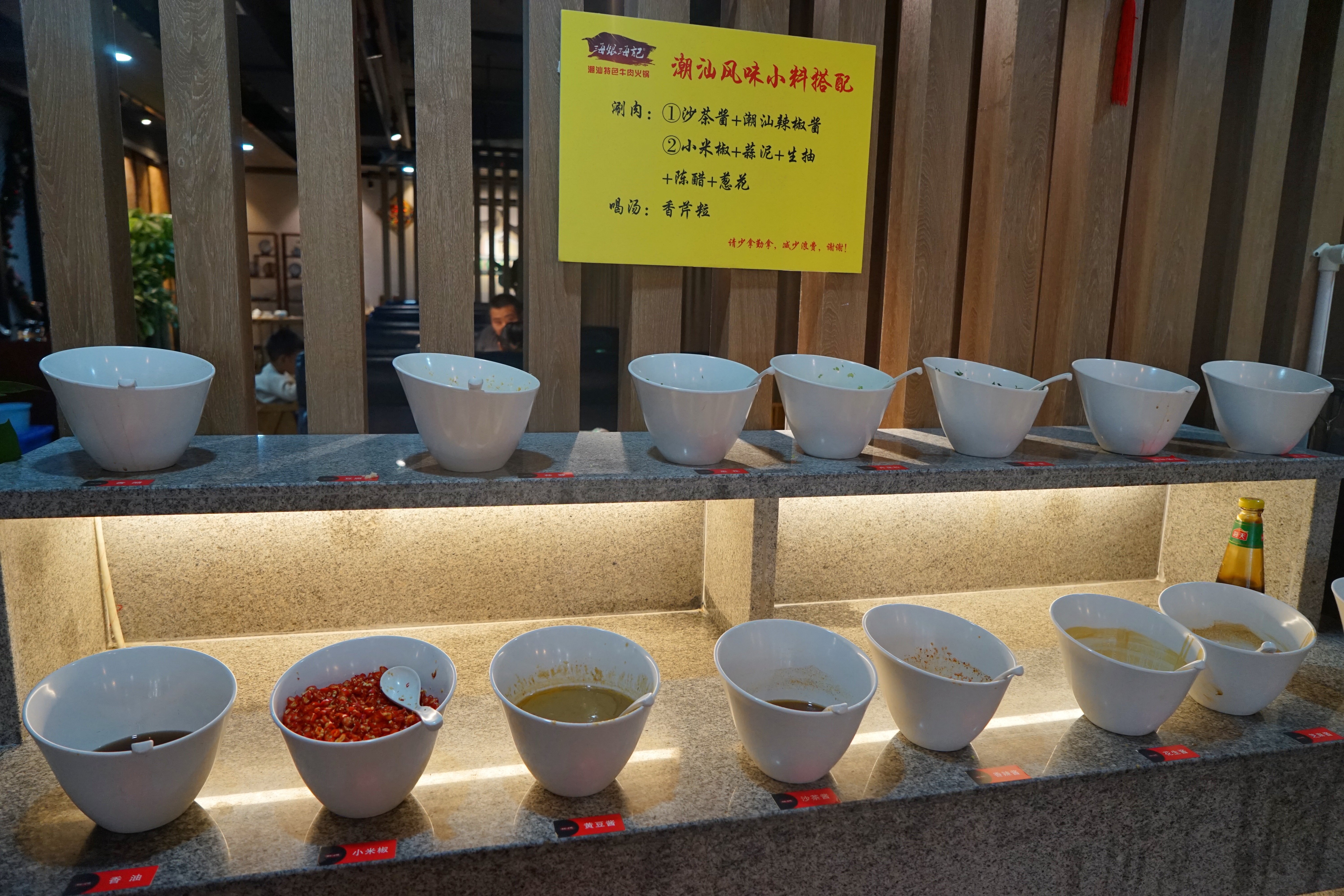 自助式酱料台,听说,牛肉火锅跟沙茶酱是绝配,然而吃不惯沙茶酱的我也是没有做尝试。旁边还有一些免费的小吃和水果提供。拿到菜单的时候,还是被震撼到了,一般火锅店的肉类标配:肥牛羊肉,到了这里变为了吊龙、雪花牛肉、脚趾肉、牛舌、牛百叶等等,不由得佩服潮汕人,确实吃得精,而且每一个部位的肉,涮煮时间也有不同,对时间也是做了明确的规定的。这吃法,确实震撼~