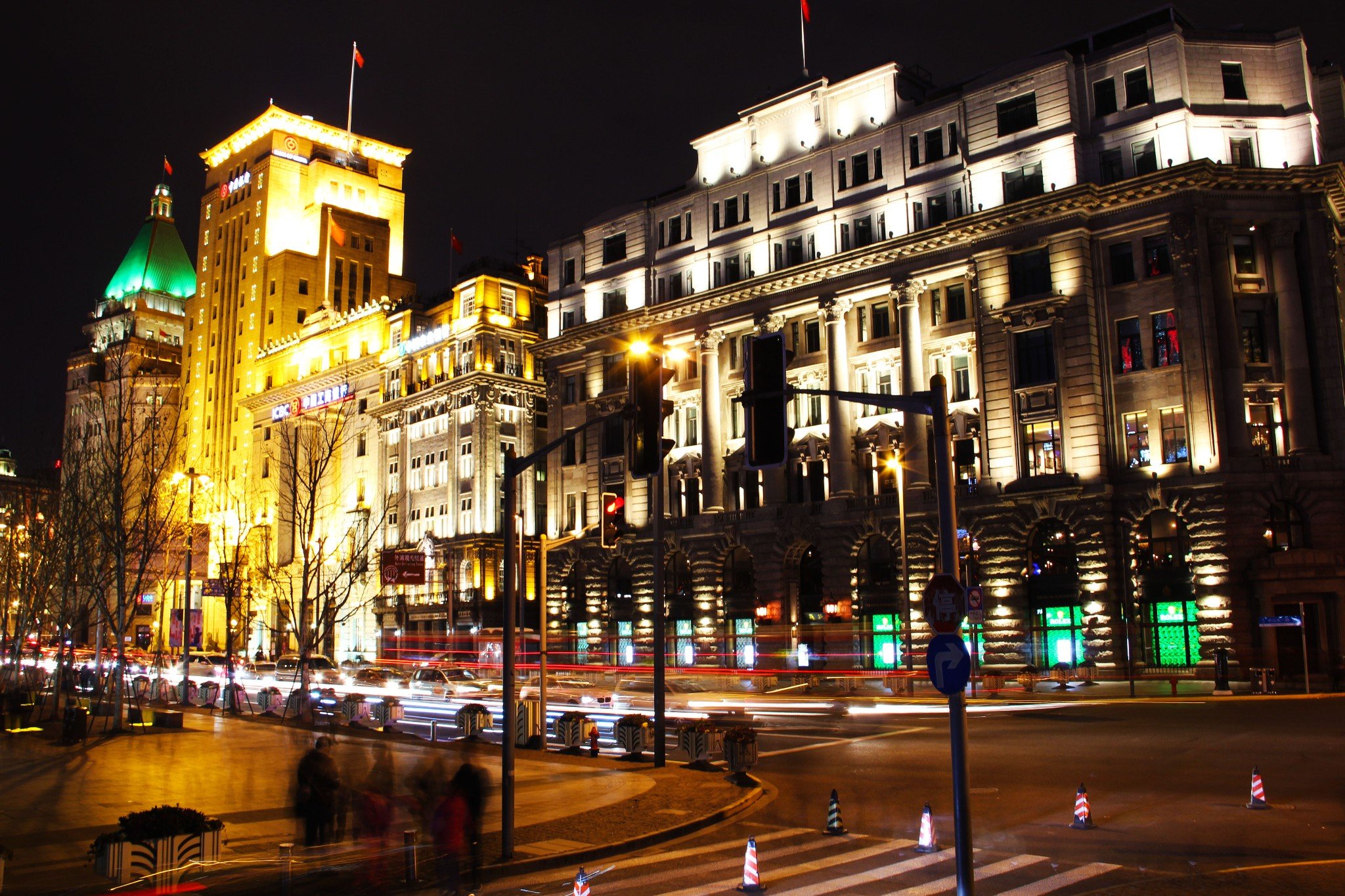 晚上10点过后,外滩灯光熄灭了,观看夜景的人流渐渐退却,留下这一栋栋受过历史岁月洗礼的巴黎式建筑,街道也只剩赶着归家的车辆。
