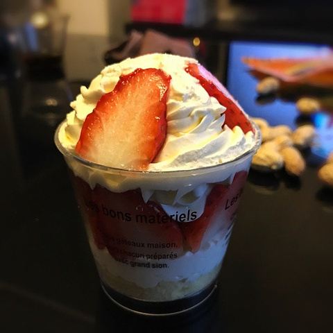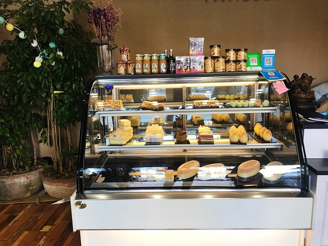 小区门口的甜品店,店主也在我们小区住,主营各式甜品、蛋糕与甜面包。之前买过面包吃,不是太喜欢。隔了好长时间又去买了甜品吃,一个豆乳盒子让我印象有了改观。目前的印象是他家甜品比面包水平高。 #豆乳盒子# 豆浆、奶油、黄豆粉做成的甜品,用料扎实,豆香明显,从卖相到味道都还不错。 【环境】 一楼是柜台和生产区,二楼有两张小桌可以坐下来慢慢吃。椅子上有只可爱的玩具熊。店内绿植众多,尤其是二楼就餐区,就是一副绿色植物的世界。在此吃着甜品聊聊天也不错。 四星支持一下邻居的生意😁